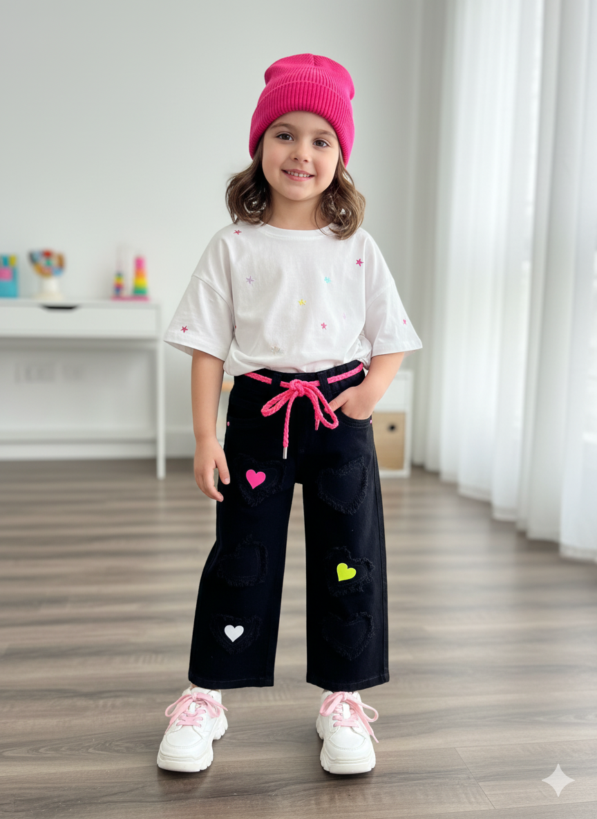 Girls Smiley Fancy Designer Wide Leg Jeans[GJ-959] (3-12Years)