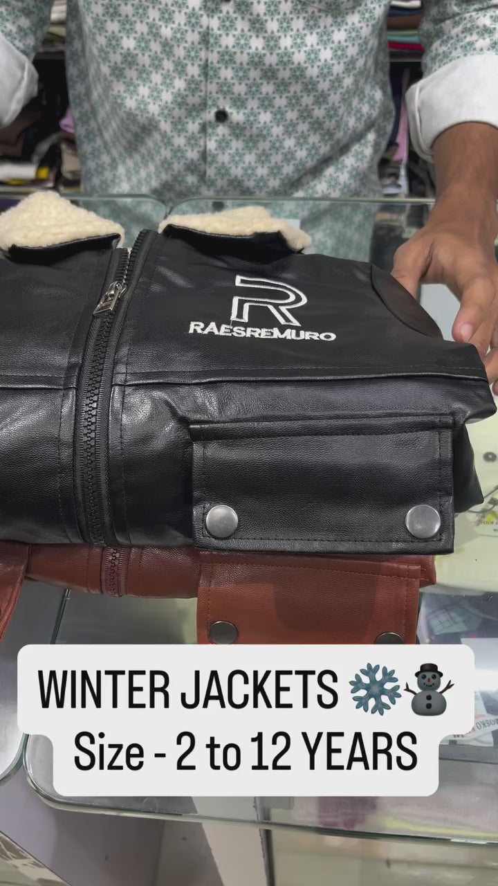 Boy's Black PU Leather Fleece Jacket with Stand Collar, Zip Up Autumn/Winter Coat with Pockets [BT-168] [2 - 12Years]