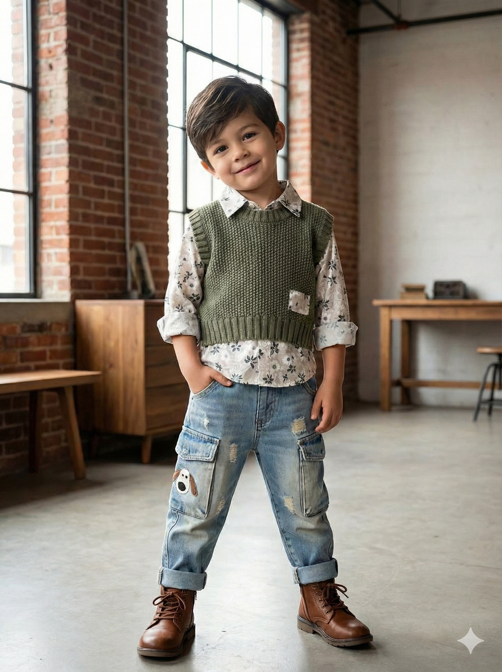 Boys Suede Green Cord Set [BT-6806] [1 - 7Years]