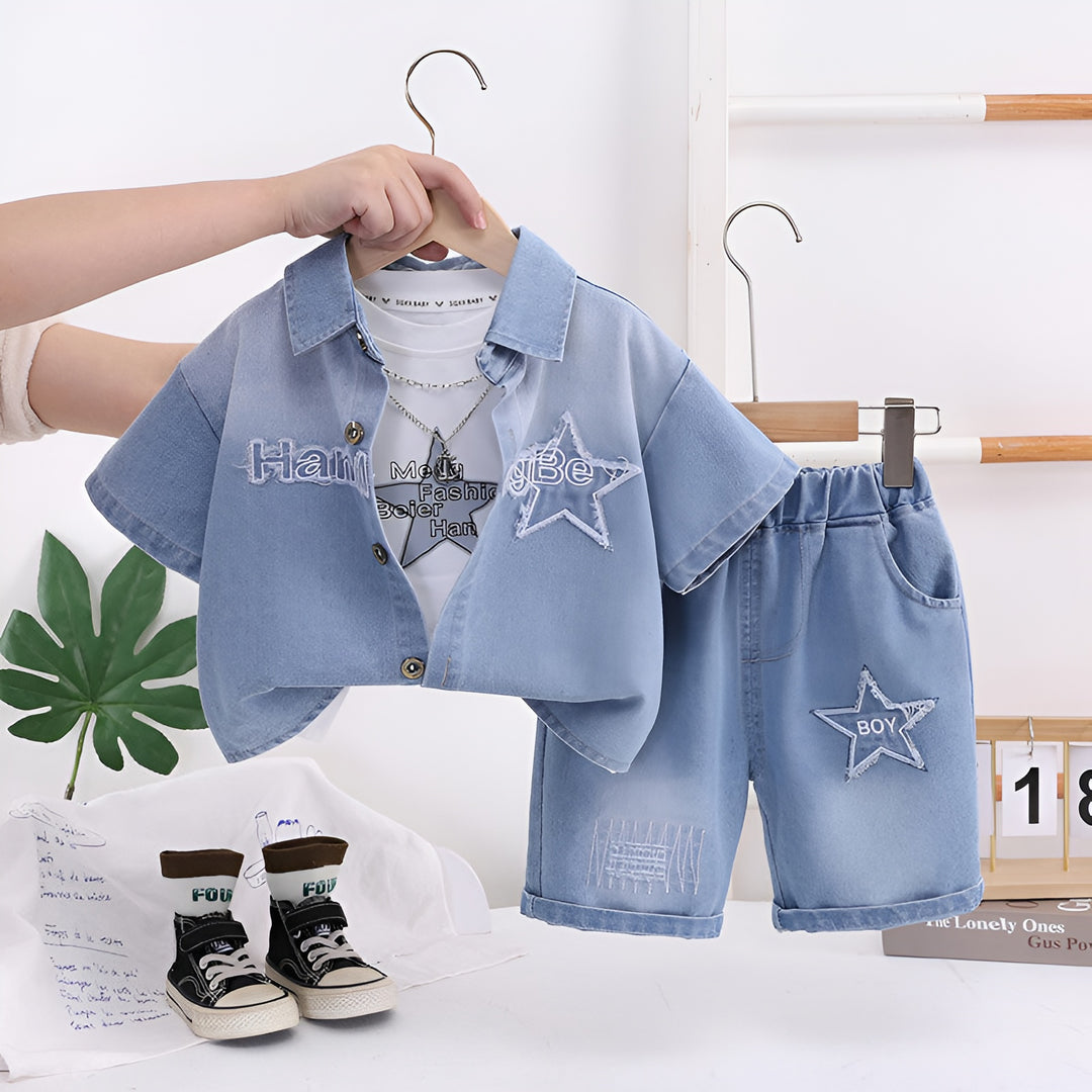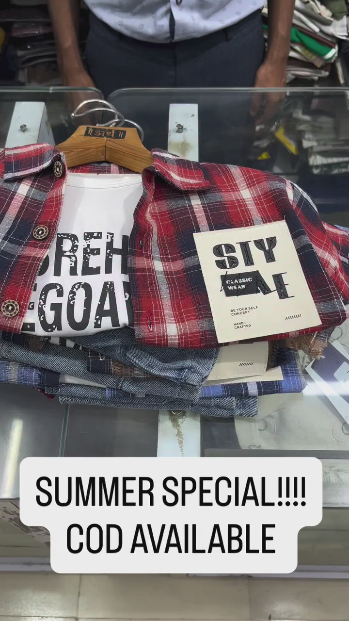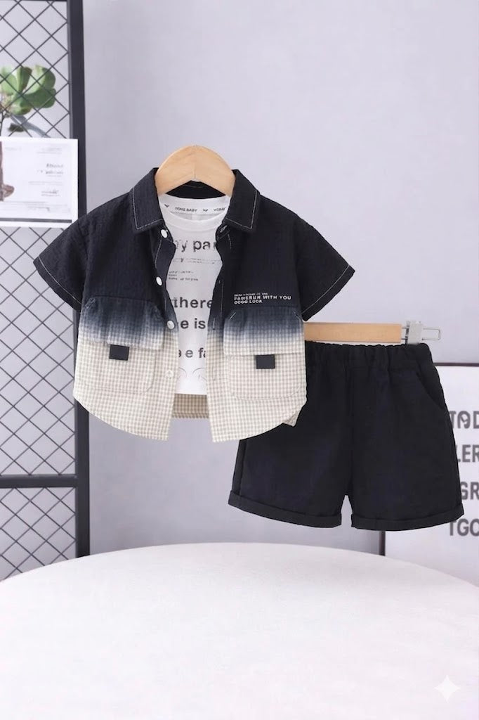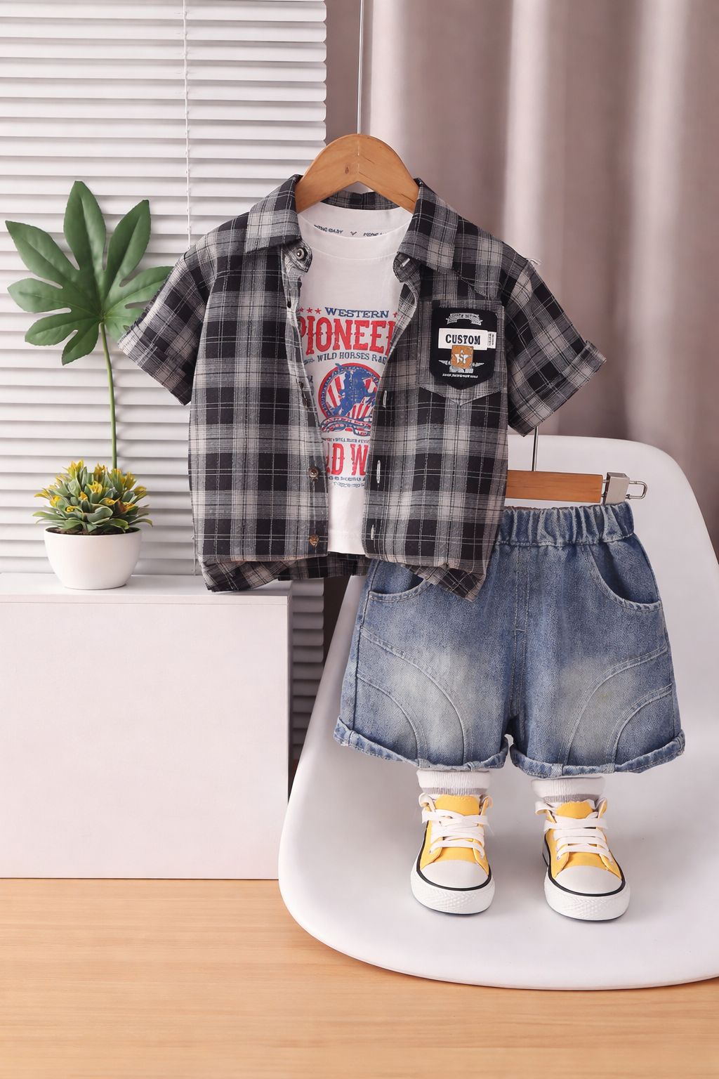 Boys Blue 3-Piece Plaid Shirt Set Cord Set [BT -490] [2-7 Years]