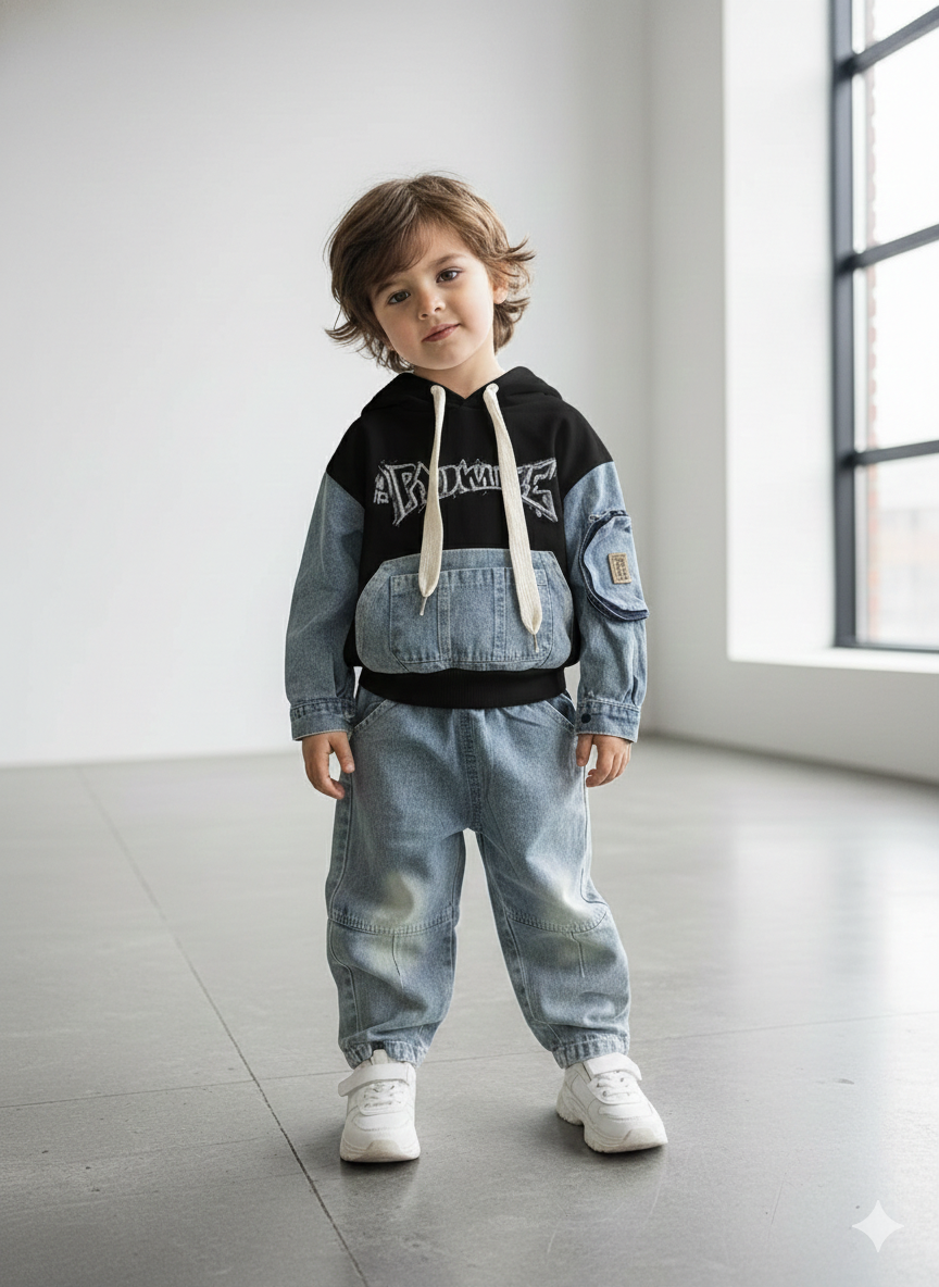 Boys Imported Hoodie Black Cord Set [BT-5974] [2 - 6 Years]