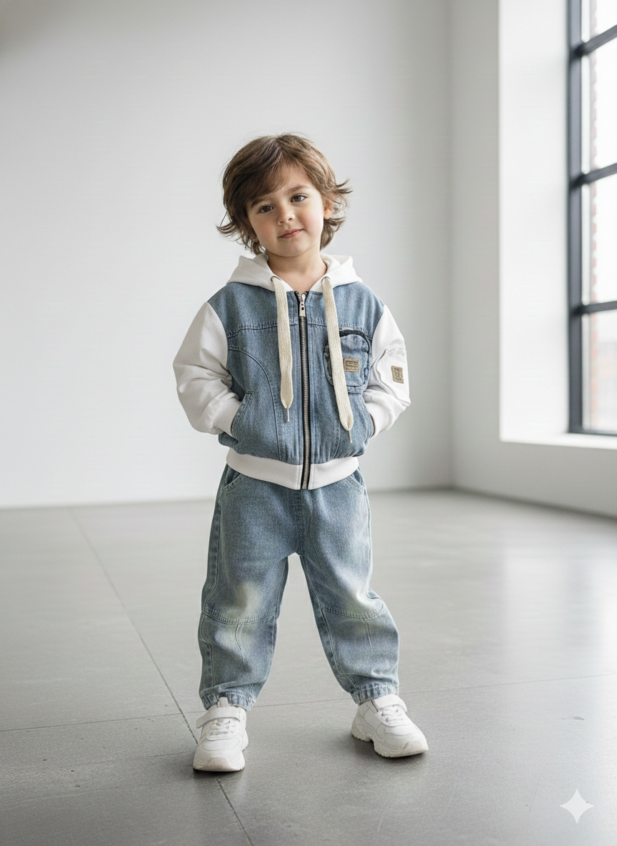 Boys Imported Hoodie White Cord Set [BT-5972] [1 - 6 Years]