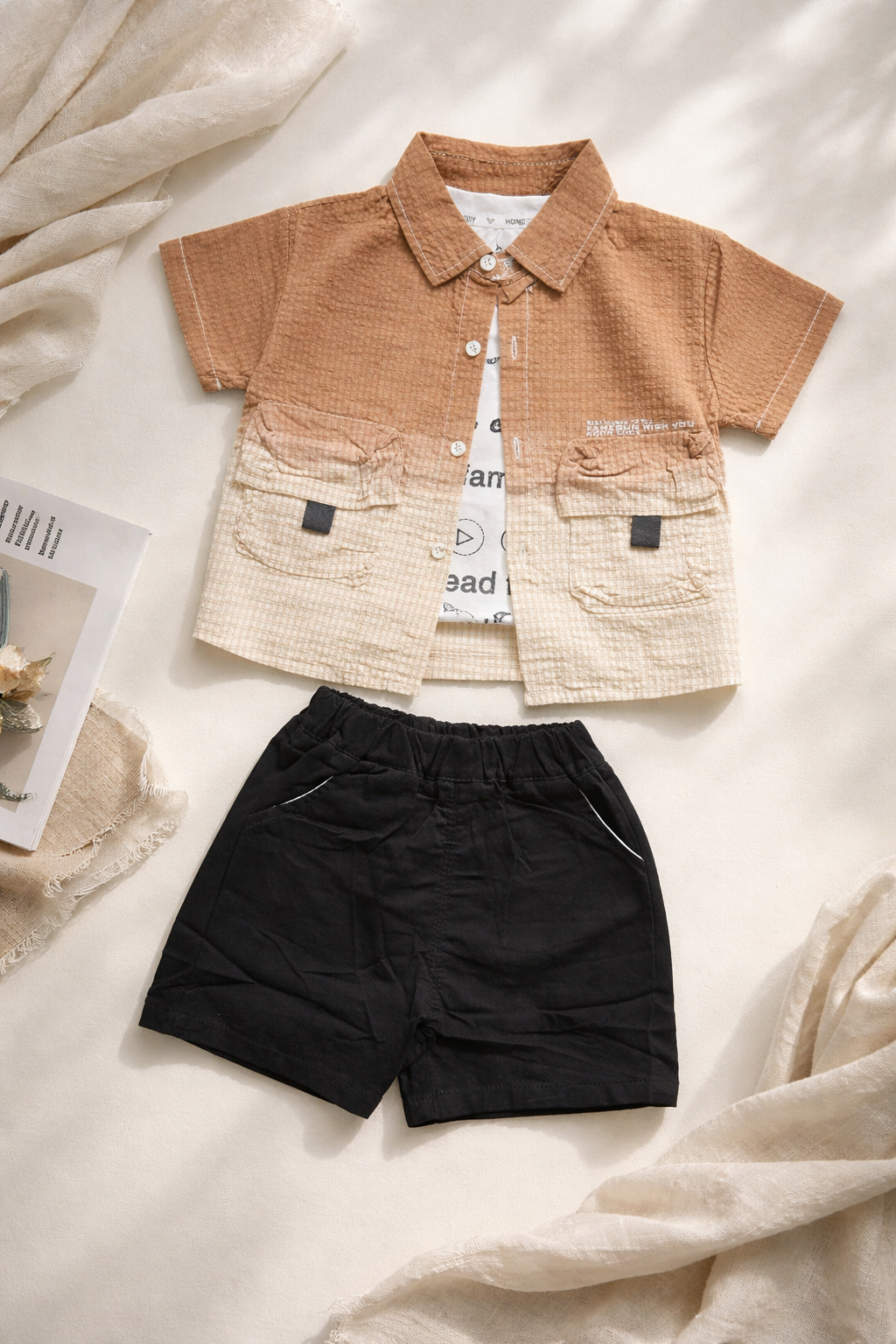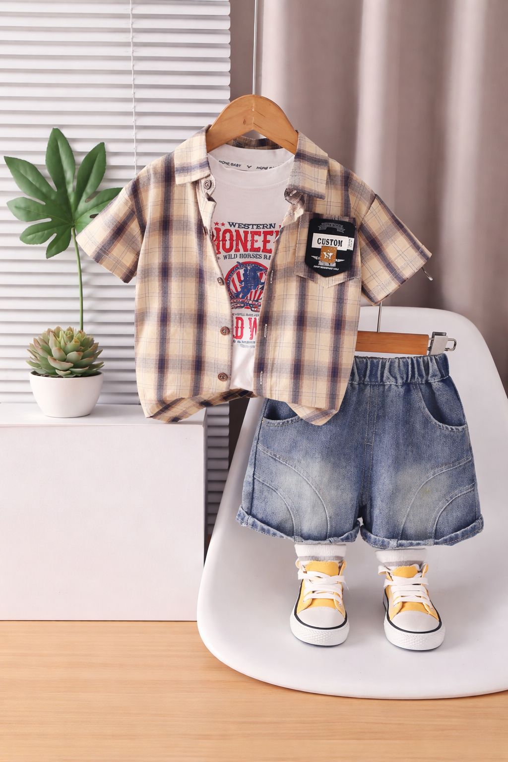 Boys Brown 3-Piece Plaid Shirt Set Cord Set [BT -491] [2-7 Years]