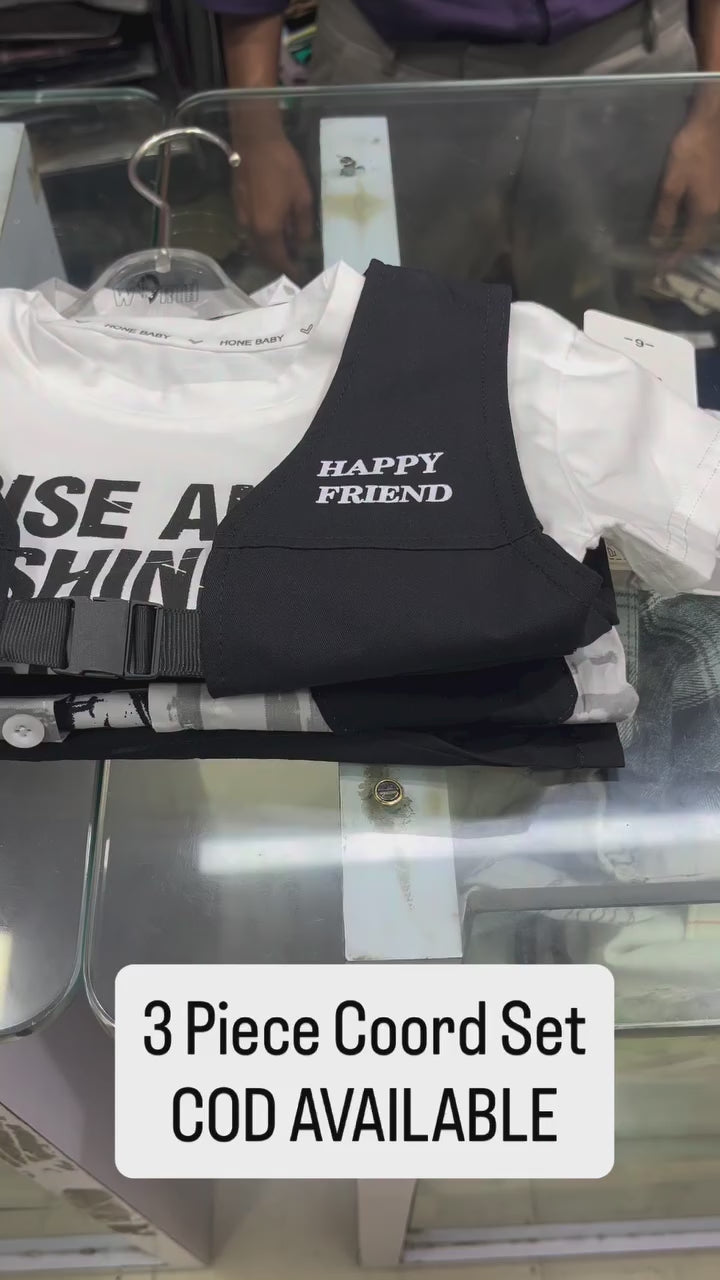 Boys 3 Pcs Imported White & Black Cord Set [BT -2004] [1-6 Years]
