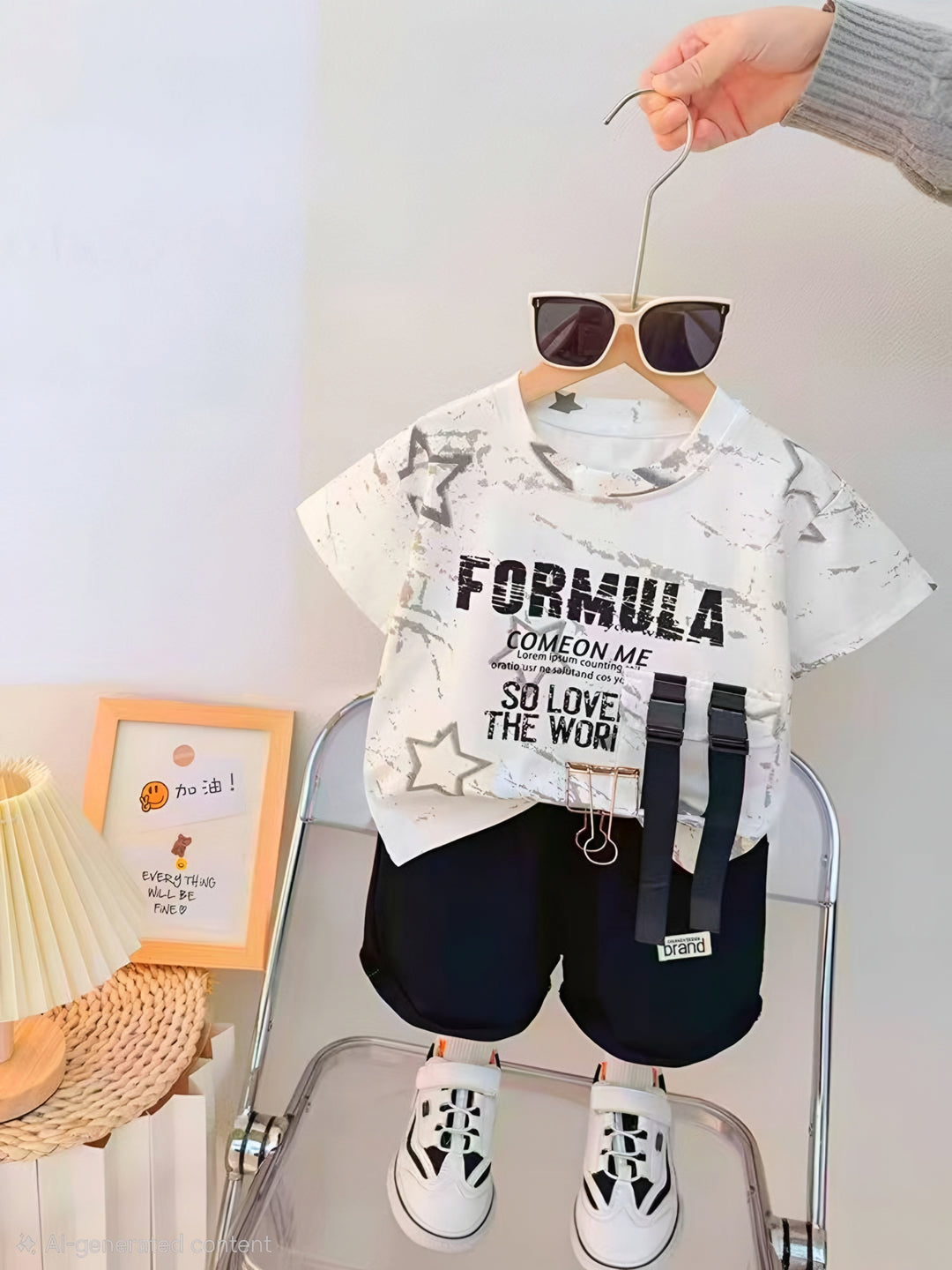 Unisex Kids' Green Graphic T-Shirt and Shorts 2-Piece Cord Set [BT-488] [2-7 Years]