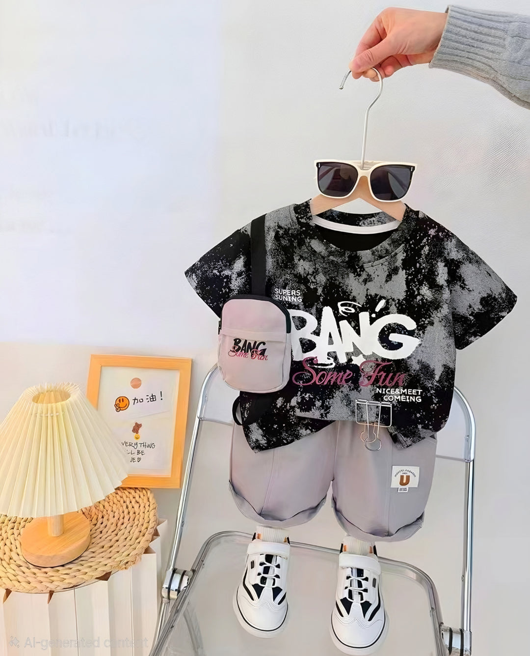 Boys Imported Black & White Cord Set With Fanny Bag [BT -2002] [1-6 Years]