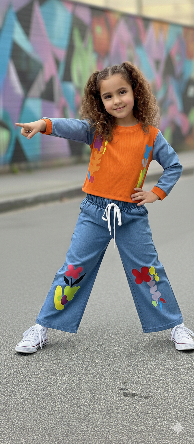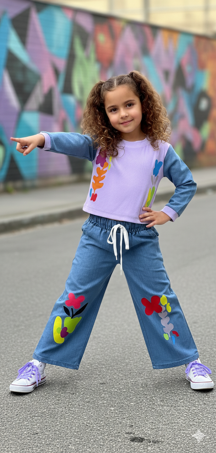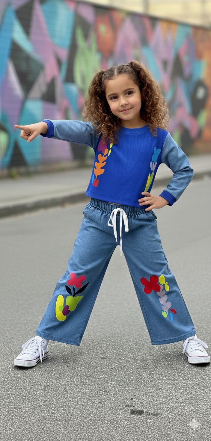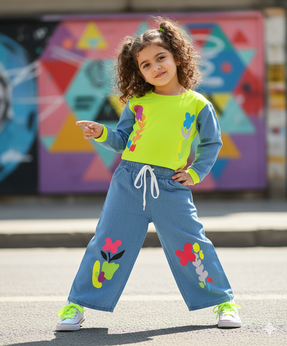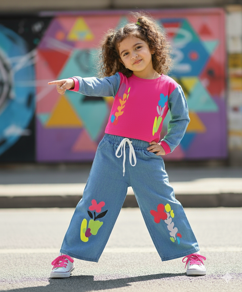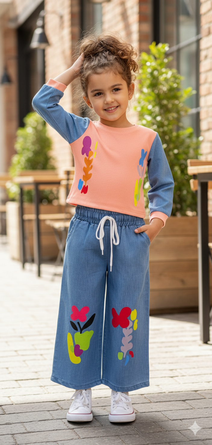 Girls Designer Soft Denim Printed Co-Ord Set [GCS-6565] (2-11Years)
