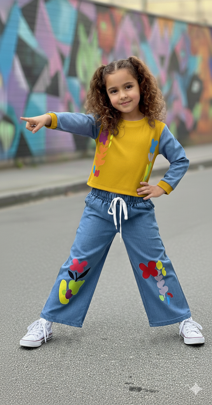 Girl's 3 Piece Yellow Denim Co-Ord Set [GCS-6613] (4-12 Years)