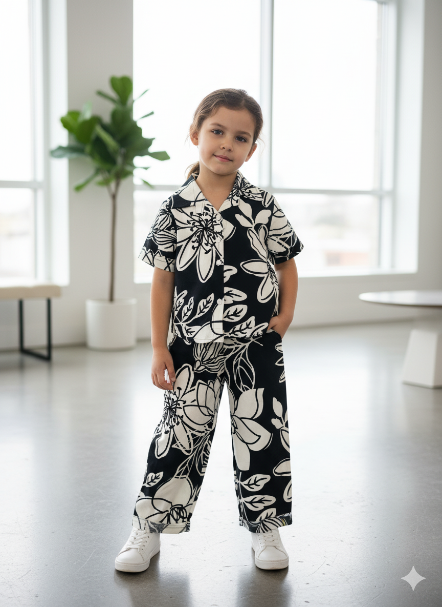 Girl's Printed Relaxed Fit Co-Ord Set [GCS-6557] (4-12 Years)