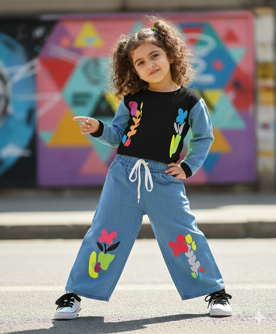 Girls Designer Soft Denim Printed Co-Ord Set [GCS-6560] (2-11Years)
