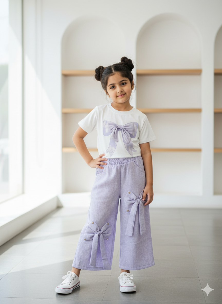 Girl's Purple Party Wear Bow Co-Ord Set [GCS-6569](4-12 Years)