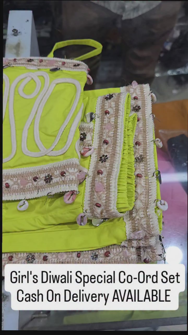 Girl's Partywear Neon Green Co-Ord Set [GCS-6840] (4-12 Years)