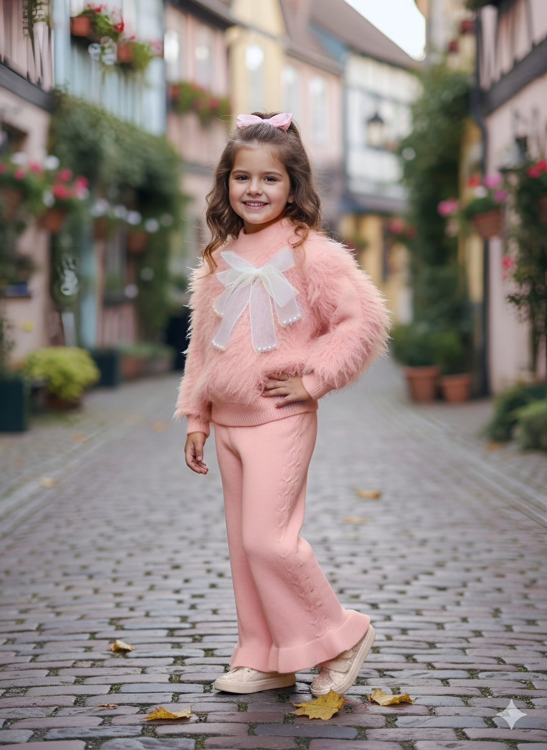 Girls Knitted Co-Ord Set With Faux Fur Detailing [GCS-6607](1-6 Years)