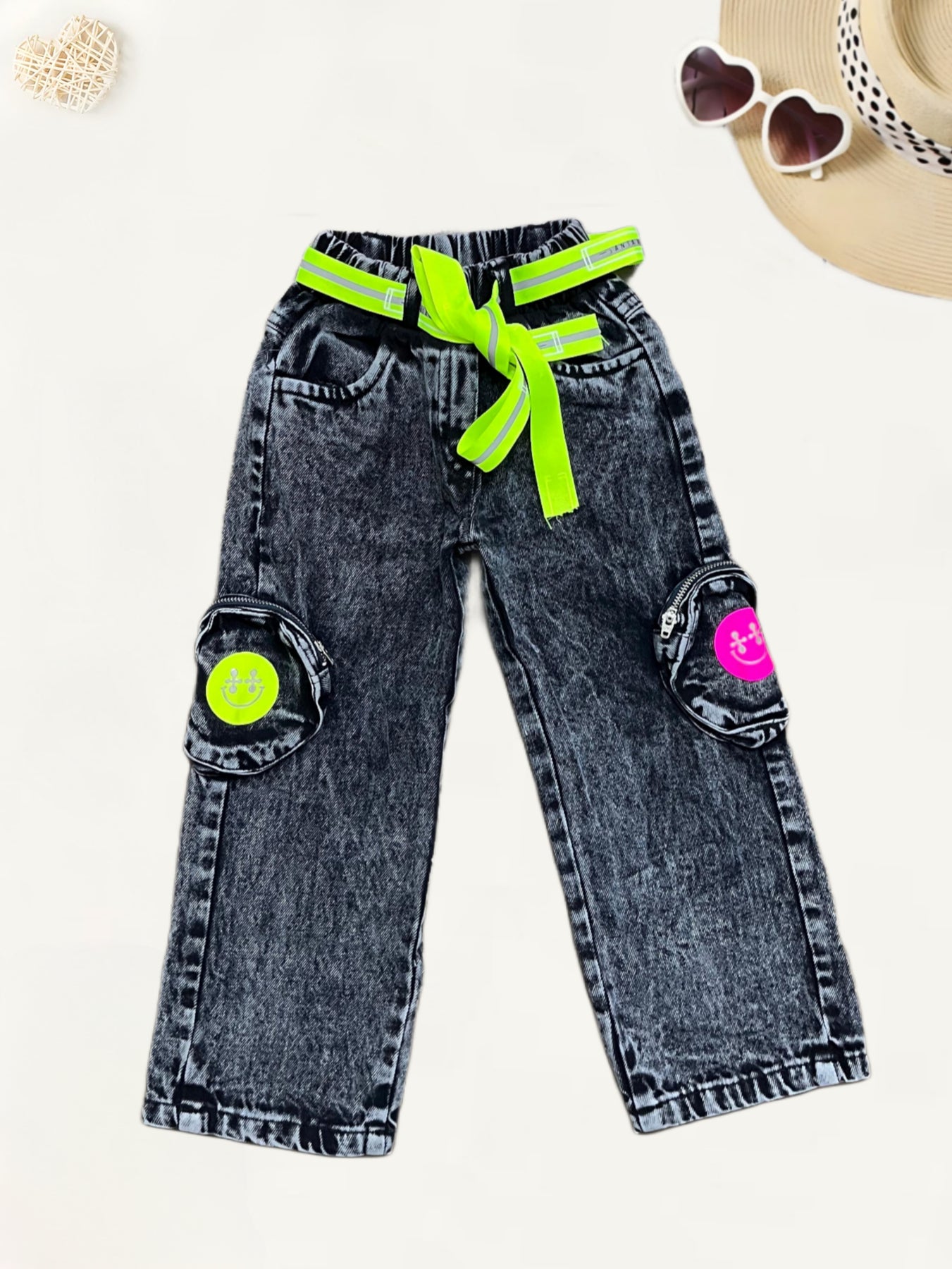 Girl's Smiley Neon Green Co-Ord Set [GCS-6552](4-12 Years)