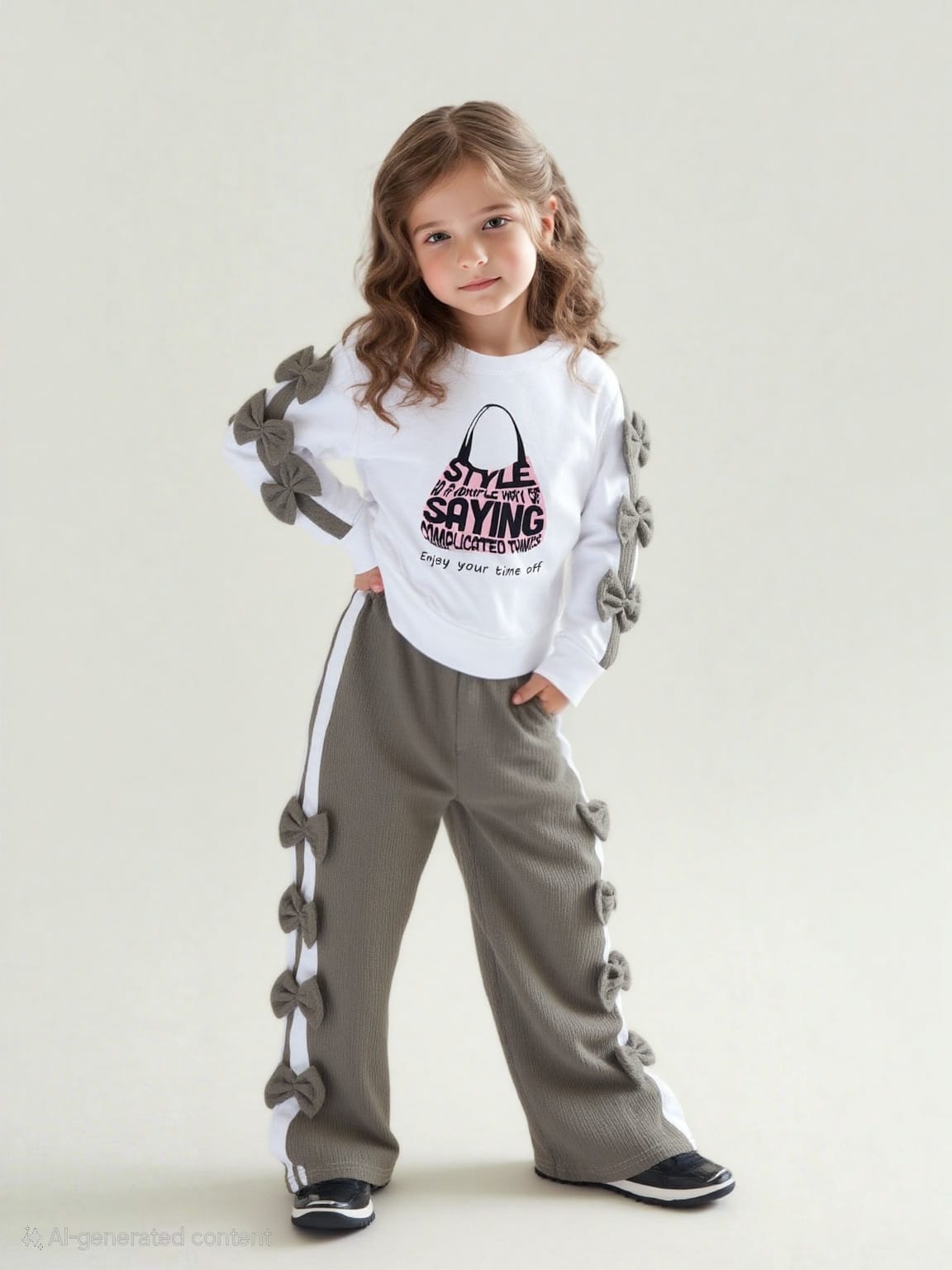 Girl's Casual Bow Co-Ord Set [GCS-6472] (4-12 Years)