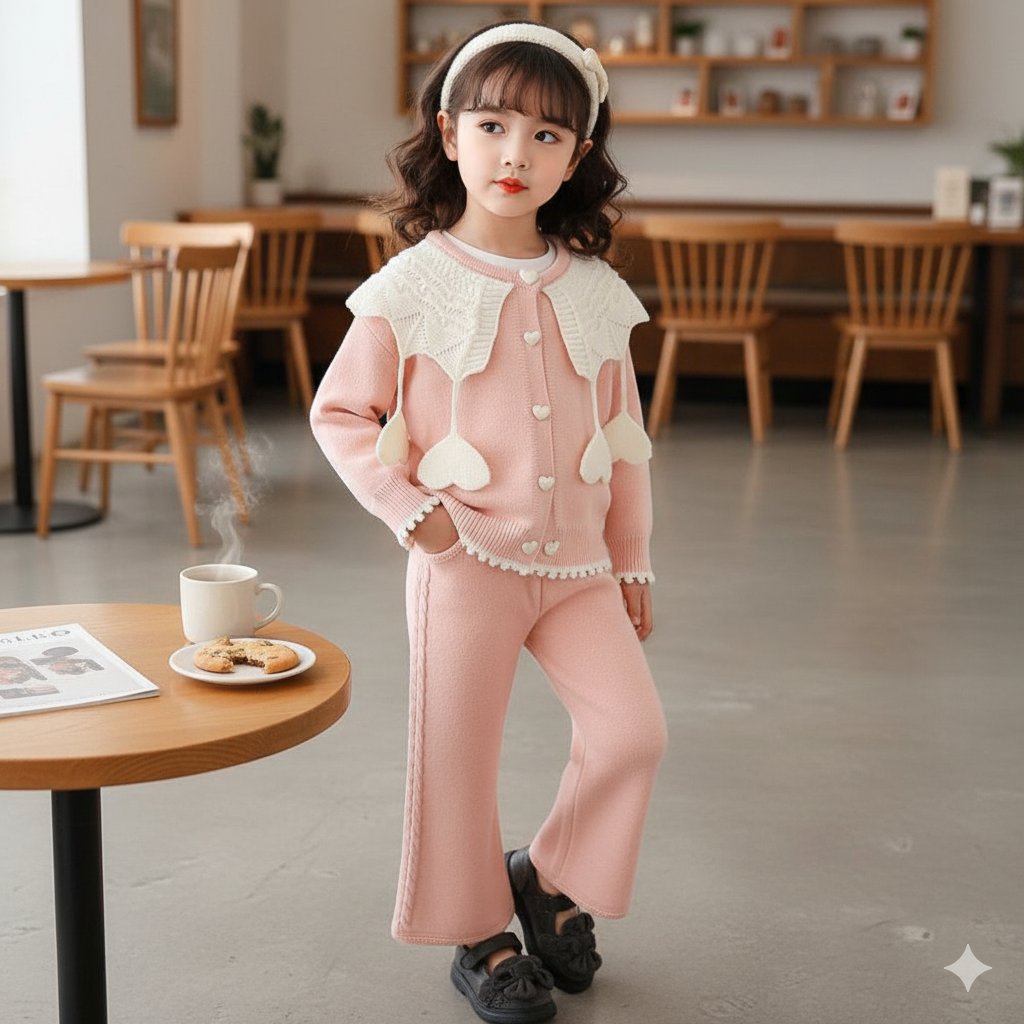 Girls Korean Knitted Winter Co-Ord Set [GCS-6341](1-6 Years)