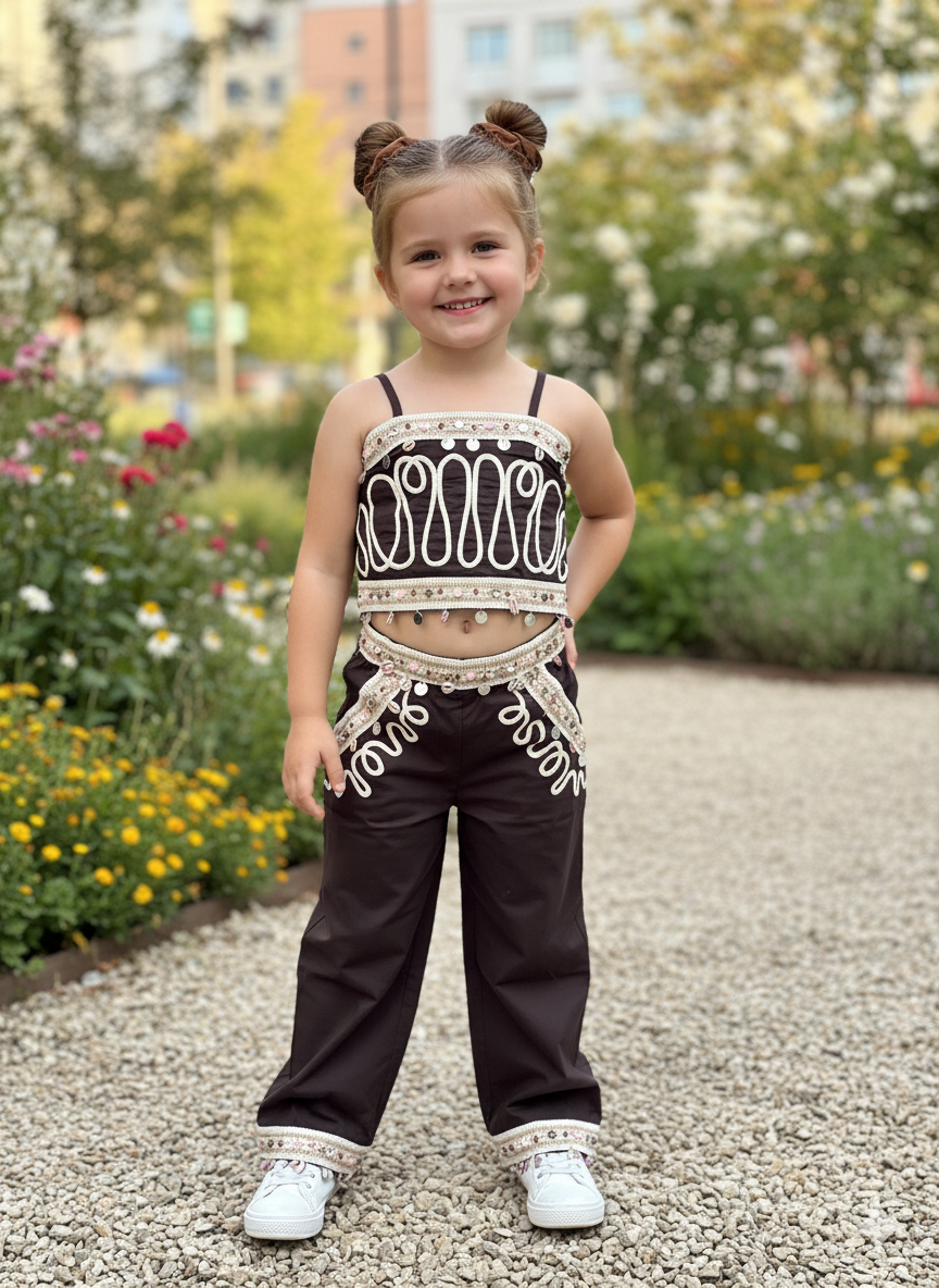 Girl's Sleeve Less Designer Coffee Co-Ord Set [GCS-6588] (4-12 Years)