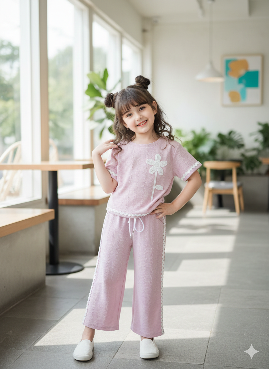 Girl's Pink Casual Co-Ord Set [GCS-6867](4-12 Years)