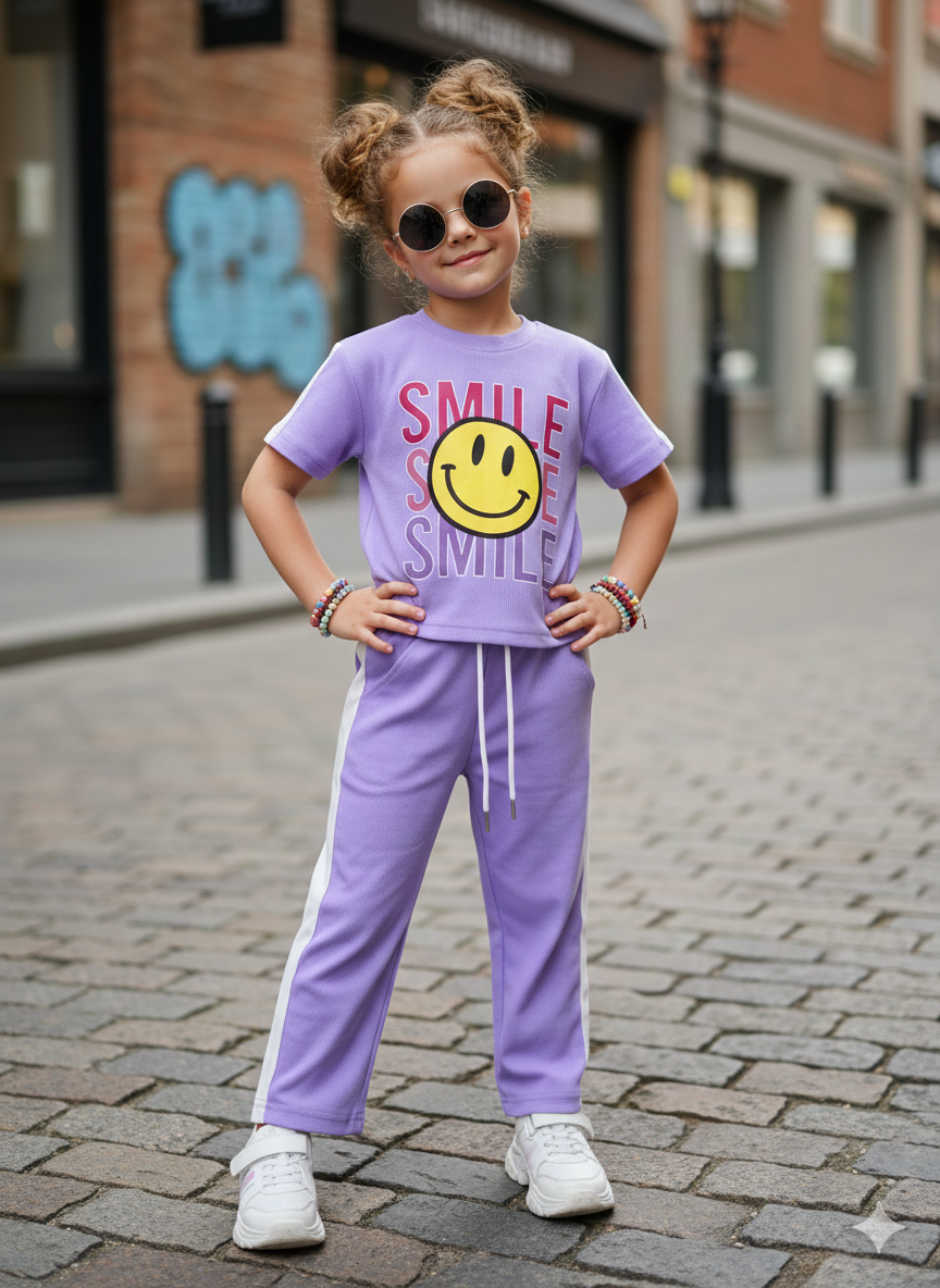 Girls Casual Smiley Lavender Co-Ord Set [GCS-6230](4-12 Years)