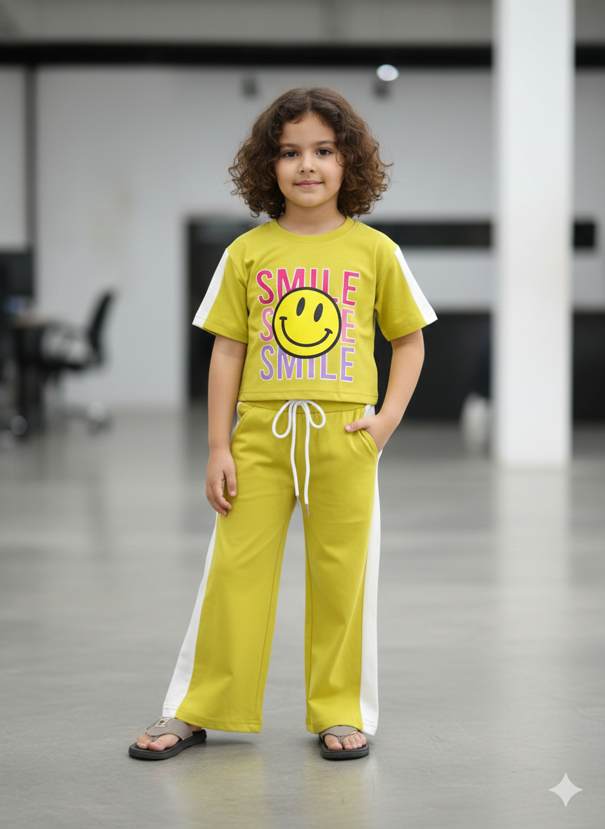 Girls Casual Smiley Yellow Co-Ord Set [GCS-6232](4-12 Years)