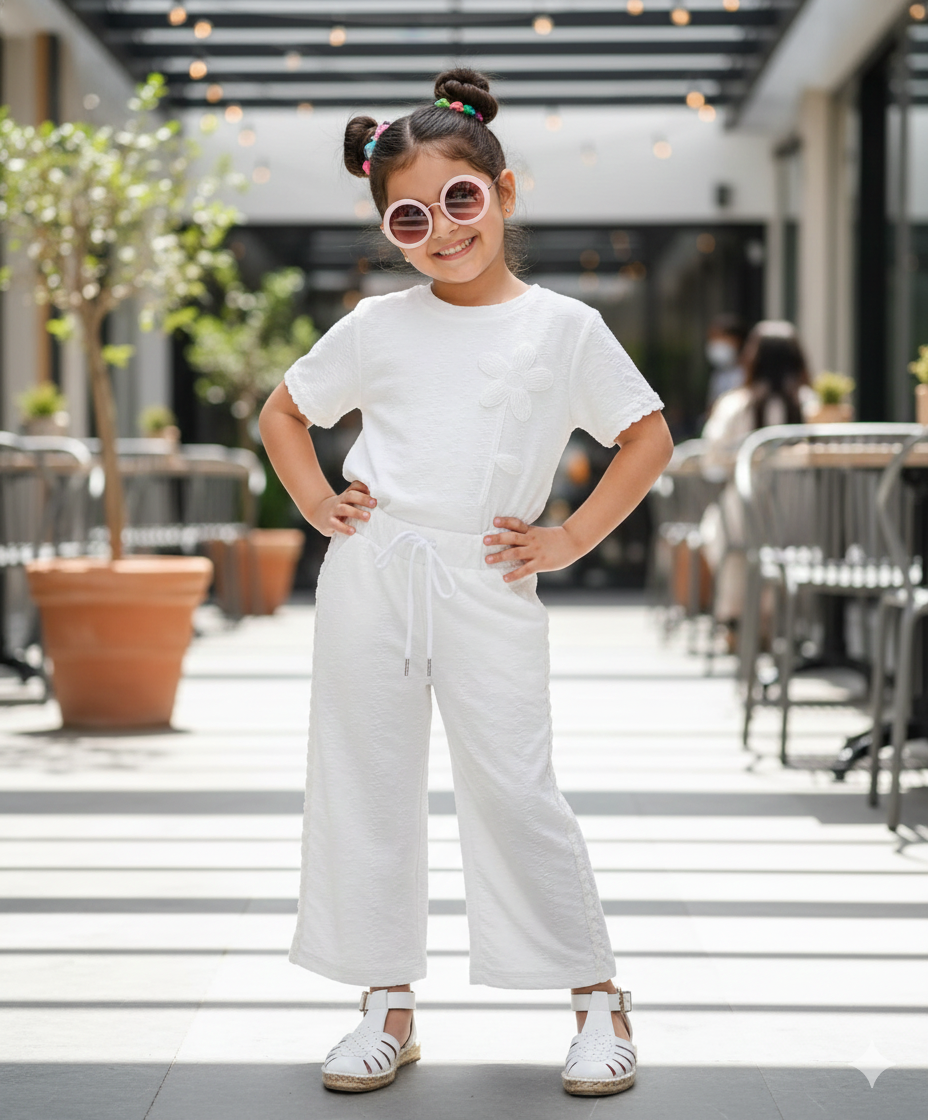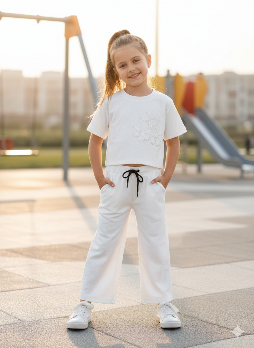Girls Casual Flower Patch White Co-Ord Set [GCS-6185](4-12 Years)