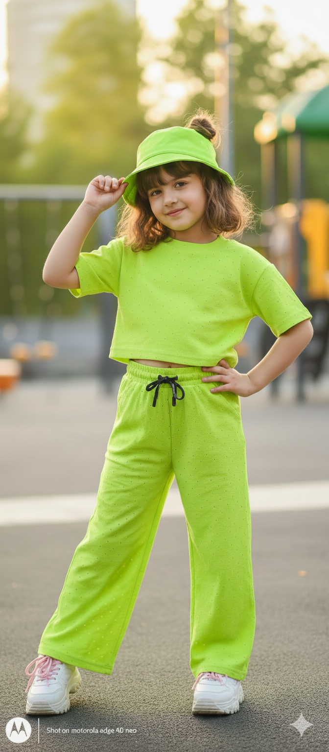 Girl's Causal Neon Green Over-Size Co-Ord Set [GCS-7244](4-12 Years)