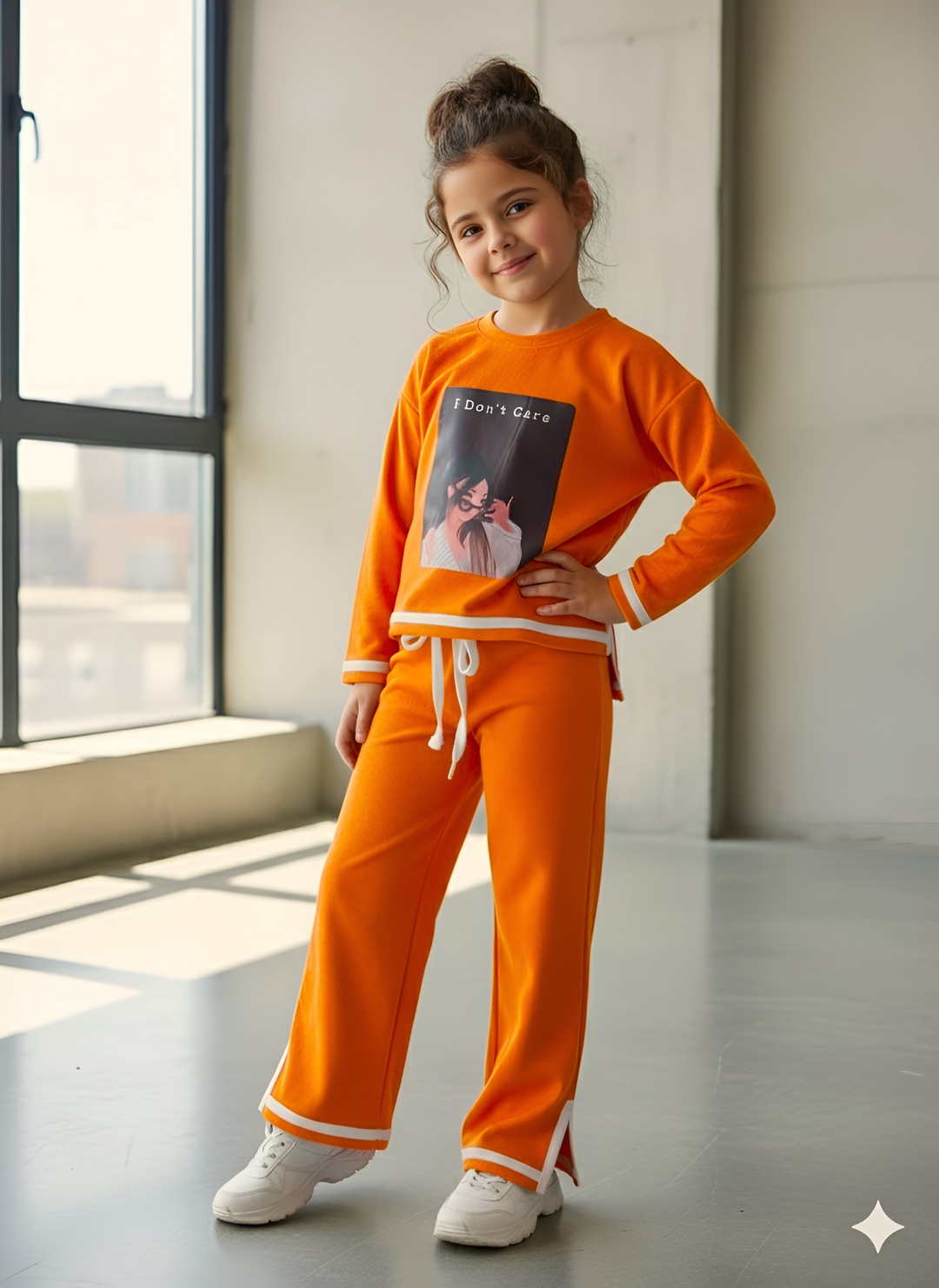 Girl's Causal Orange Co-Ord Set [GCS-6323](3-12 Years)
