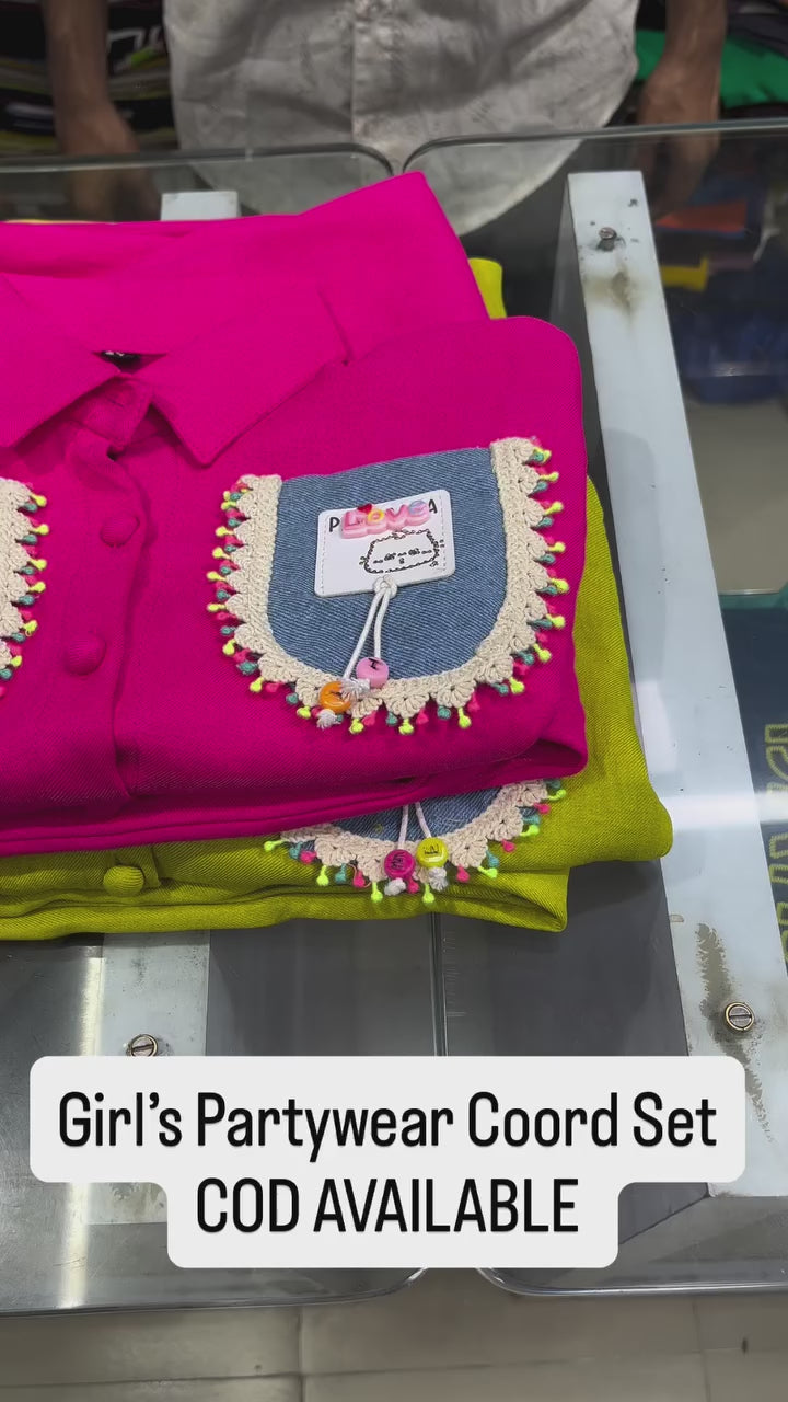Girl's Partywear Causal Neon Green Co-Ord Set [GCS-6187](4-12 Years)