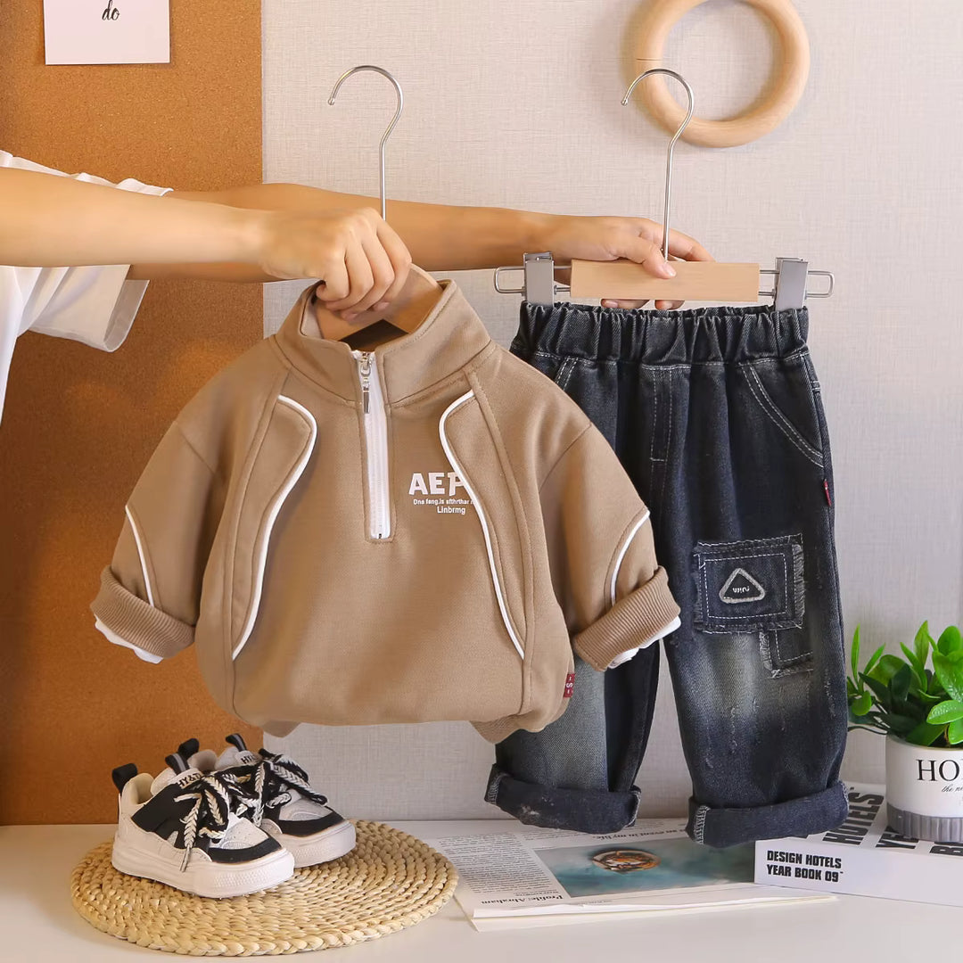 Boys Imported 2 Piece Denim Zipper Co-Ord Set [BT-6080] [2 - 7 Years]