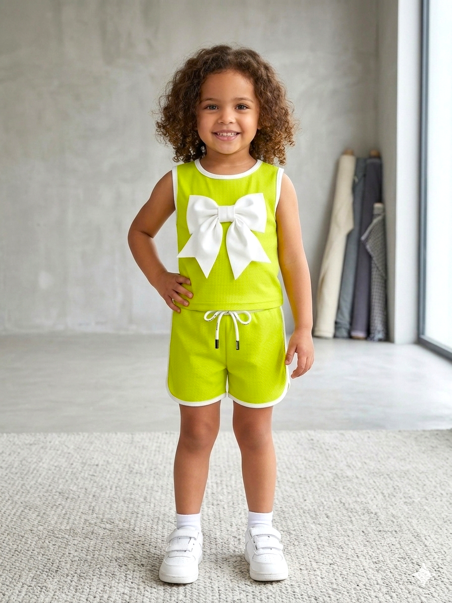 Girl's Summer Neon Green Co-Ord Set [GCS-5063] (2-9Years)