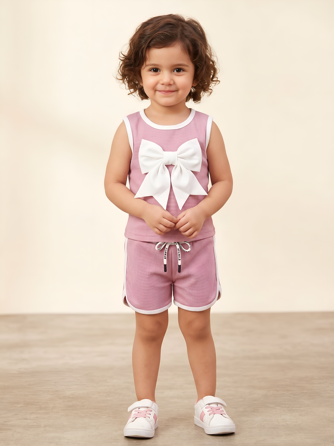 Girl's Beige Bow Co-Ord Set [GCS-6449] (1-12 Years)