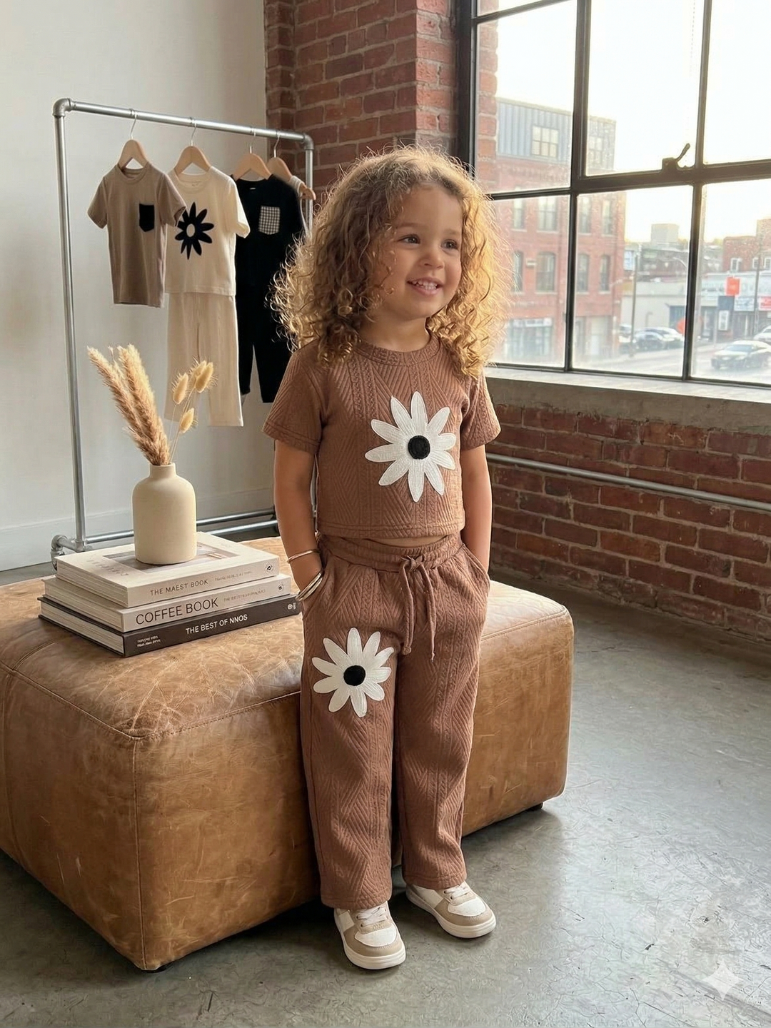 Girls Casual Flower Brown Co-Ord Set [GCS-6088] (3-12 Years)