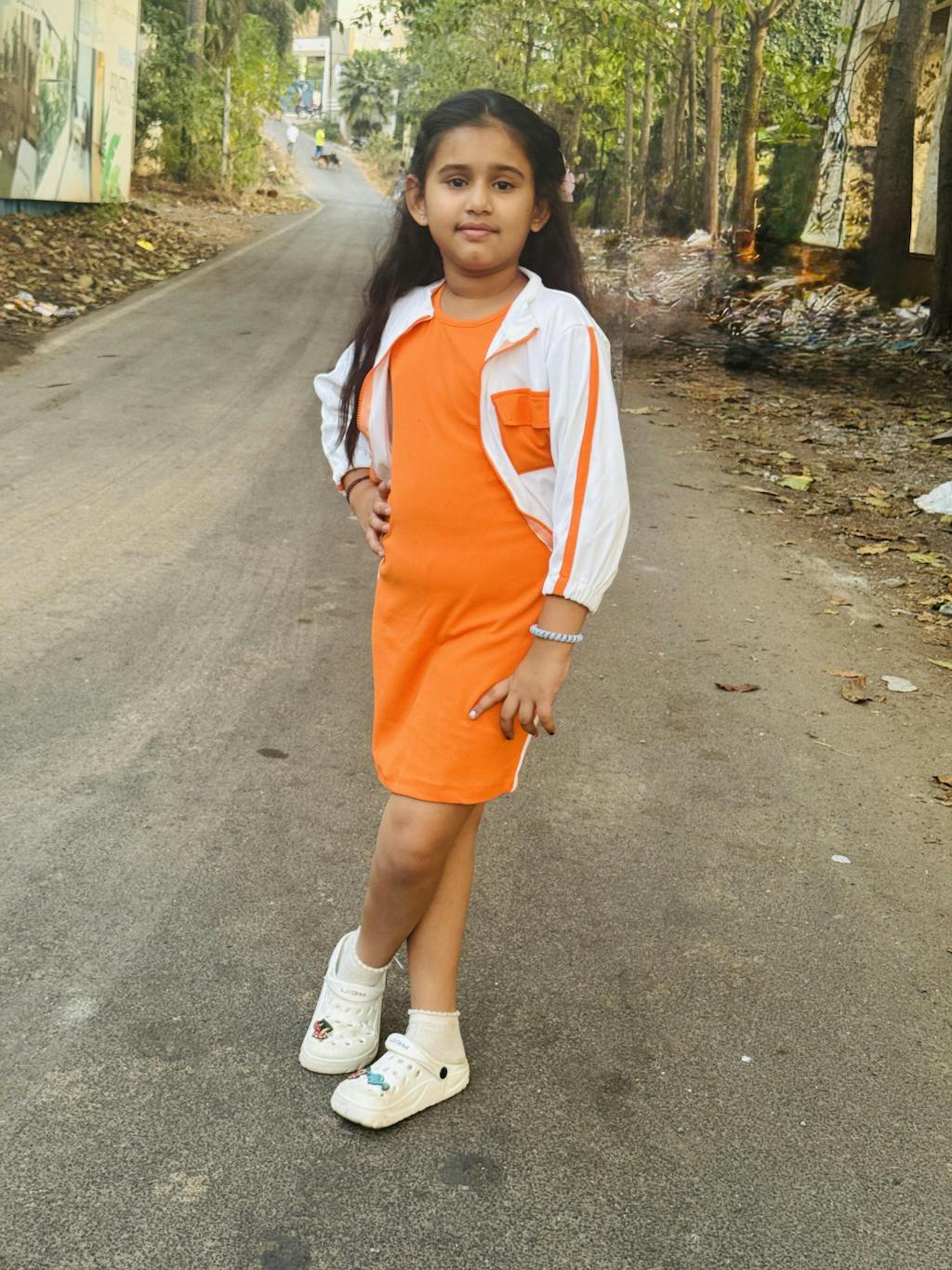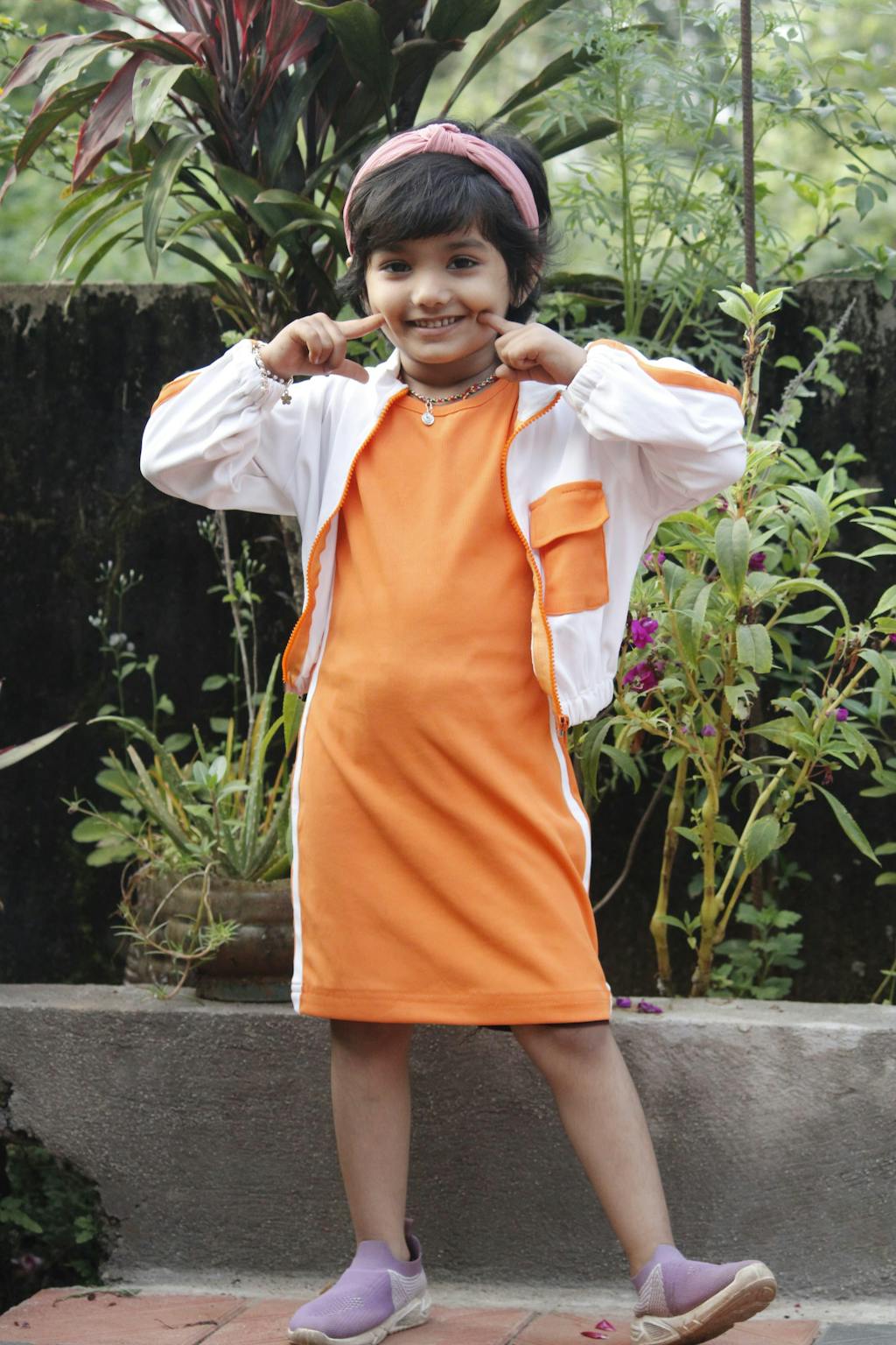 This charming orange and white bodycon dress is perfect for your little fashionista! Designed with a stylish zipper, it offers a snug fit that flatters while ensuring comfort. The vibrant colors and playful design make it an ideal choice for any occasion, whether it's a party or a casual day out. Let her shine in this delightful dress that combines fun and flair effortlessly !!