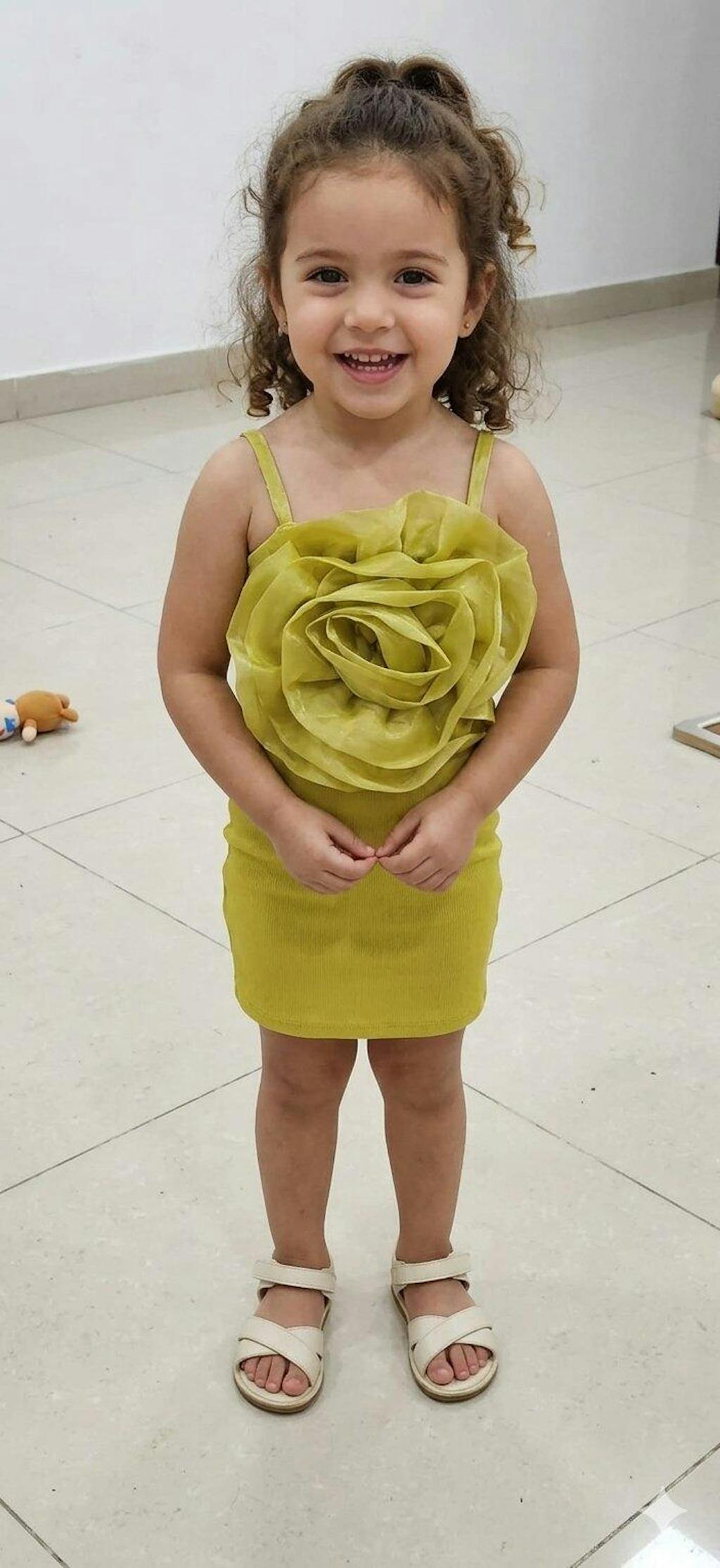 This charming Yellow dress features a delightful flower design, perfect for adding a touch of whimsy to any outfit. Its soft fabric ensures comfort, making it an ideal choice for casual outings or playdates.
