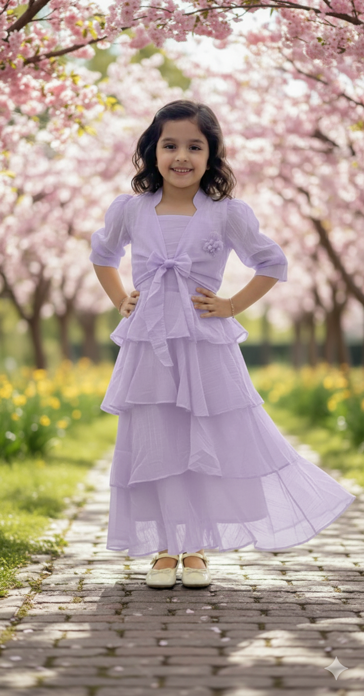 Girl's Cotton Lilac Frock [GD-6919](4-12 Years )