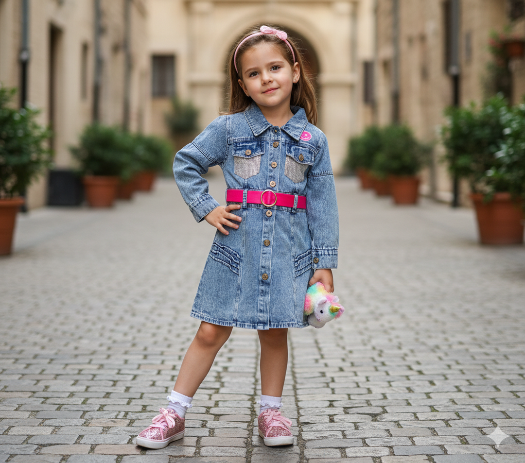 Girls Designer Denim Dress [GD-6679 ] (4-13 Years)