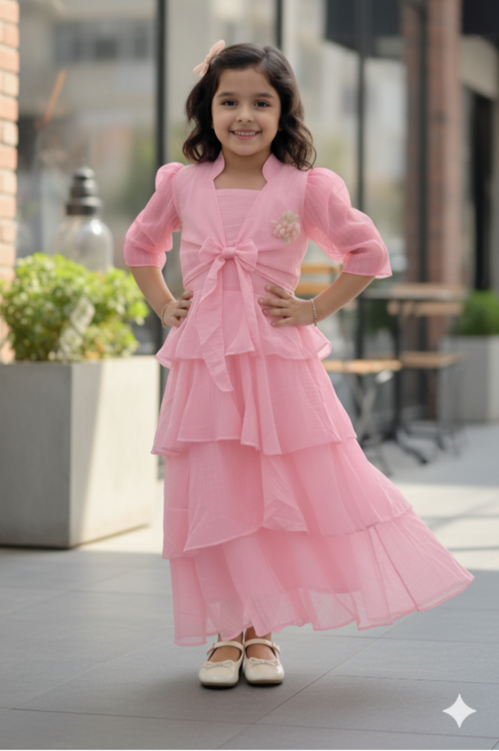 Girls Party Wear Onion pink One-Piece With Purse [GD-6946] (4-12 Years)