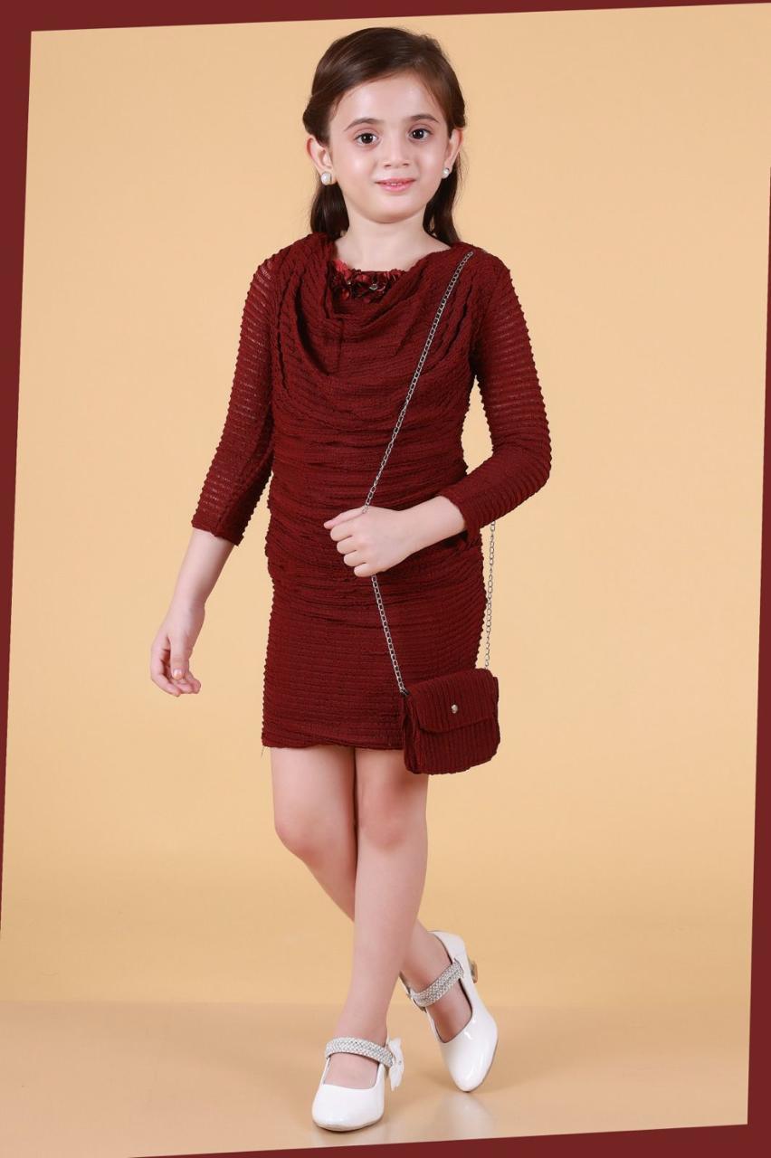 Girls Party Wear Maroon One-Piece With Purse [GD-6940] (4-12 Years)