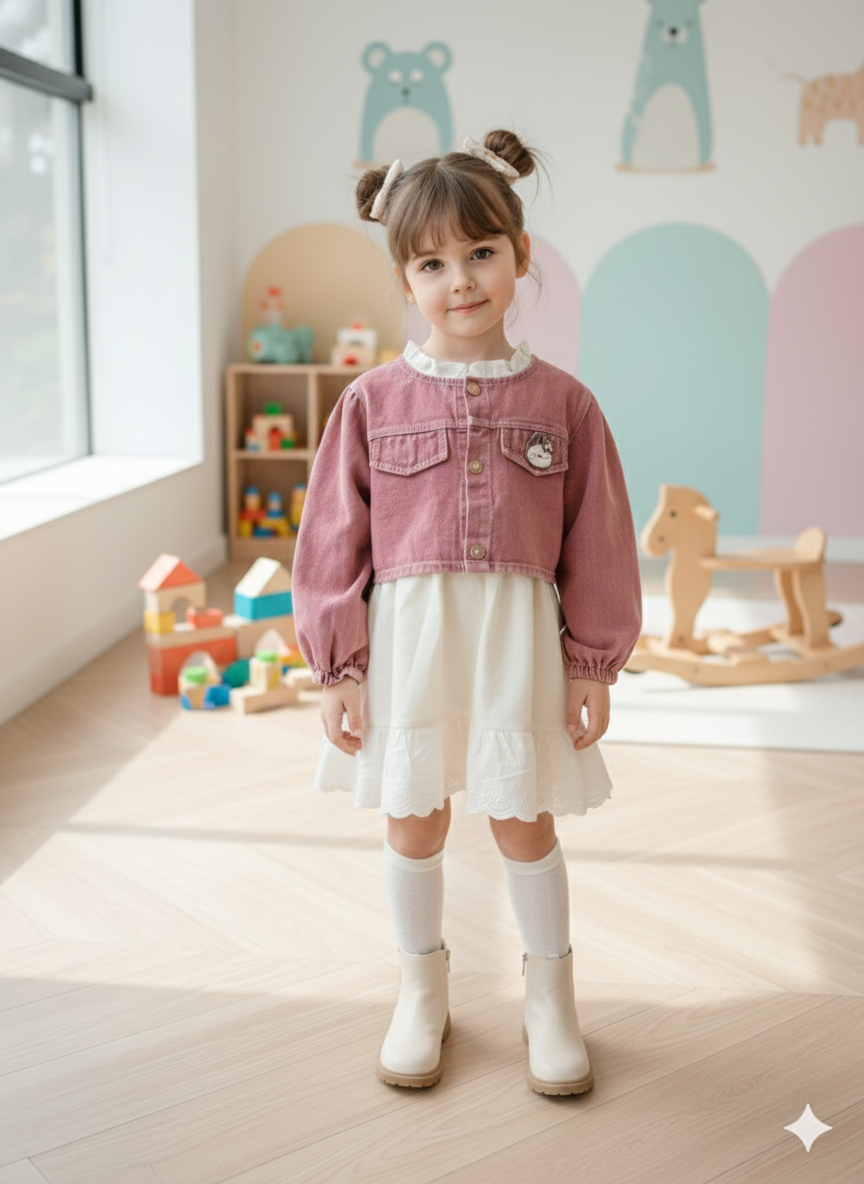Girls Imported 2 Peice Dress With Denim Jacket[GF-6240] (6M - 3Years)