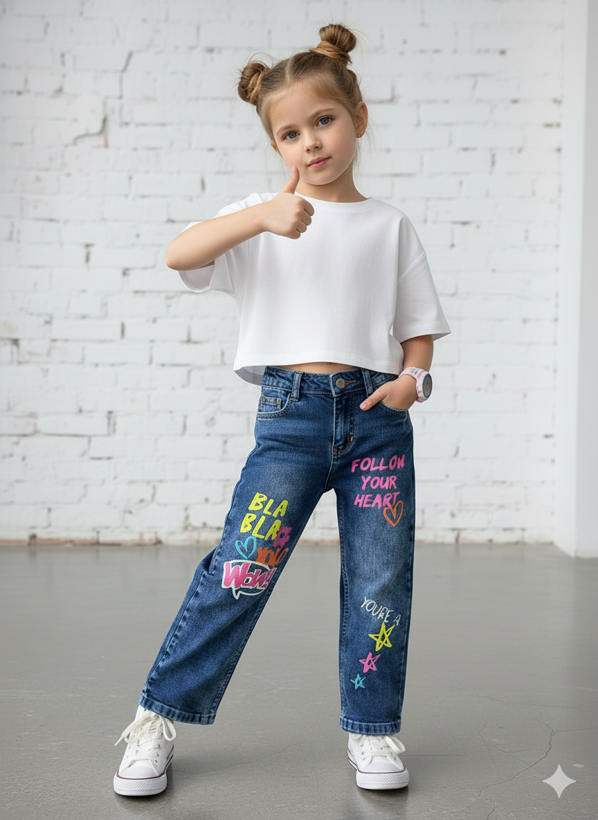 Girls Funky Straight Fit Jeans [GJ-946] (1-12Years)
