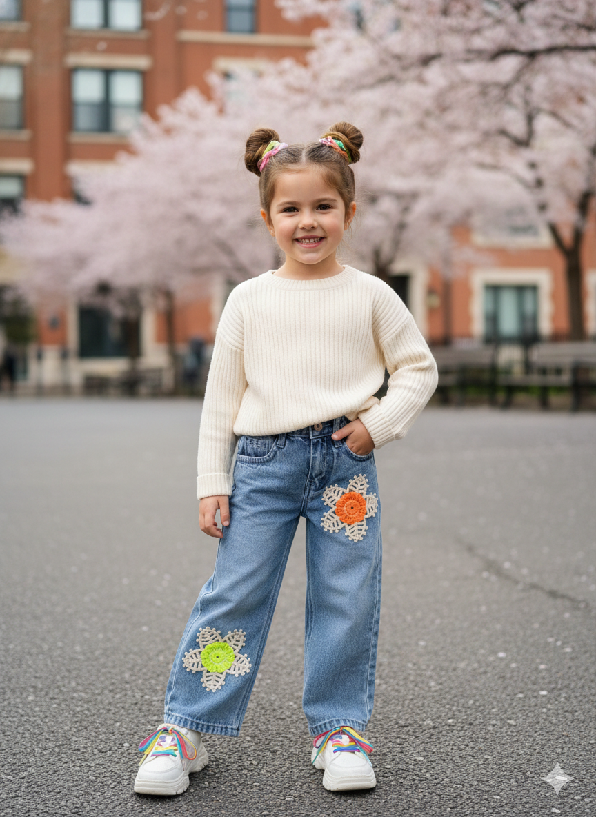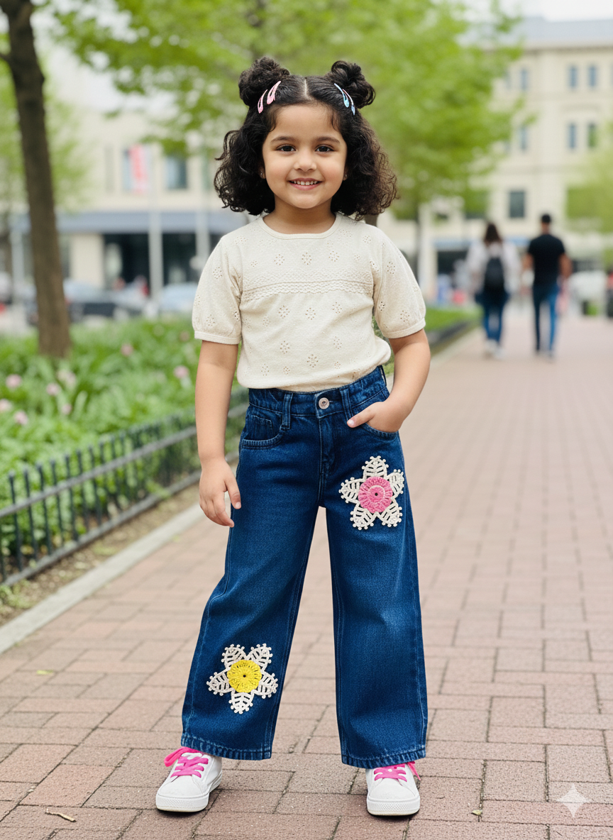Girls Crochet Patch Straight Fit Denim Jeans [GJ-1004] (4-12Years)