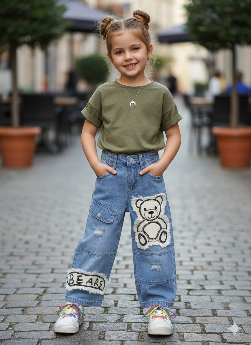 Girls Cargo Wide Leg Jeans [GJ-928] (1-4Years)