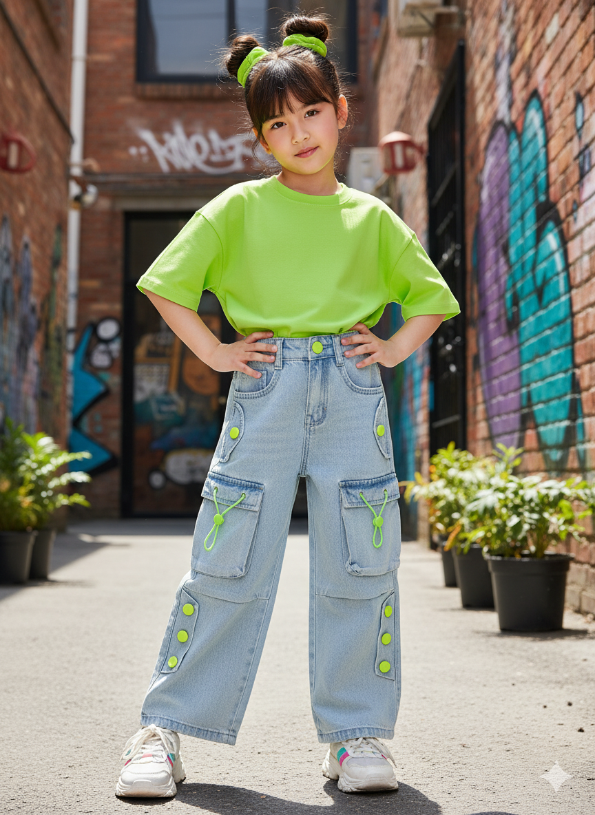 Girls Wide Leg Cargo Jeans [GJ-906] (9 Months-14Years)