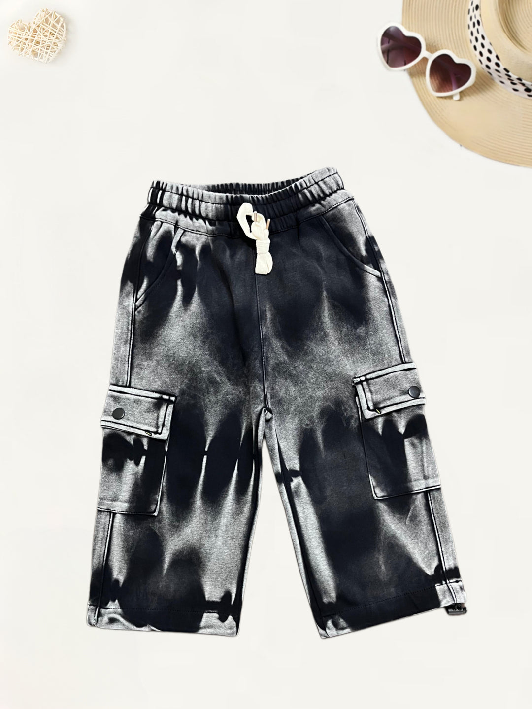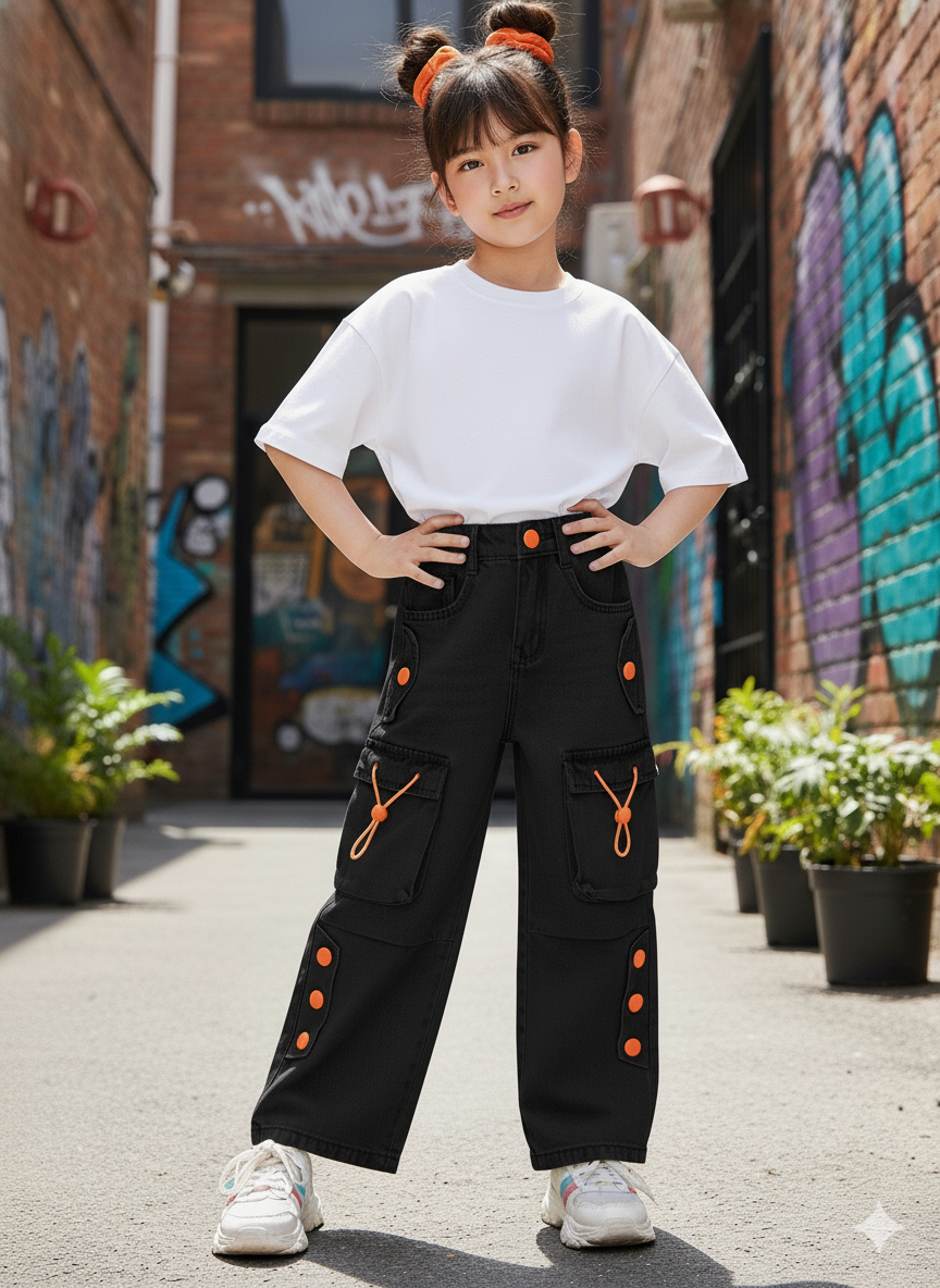 Girls Wide Leg Cargo Denim Black Jeans [GJ-985] (3-14Years)