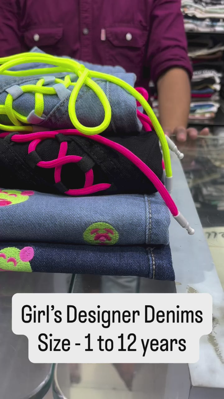 Girls Light Blue Smiley Embroidered Straight Fit Jeans [GJ-963] (1-12Years)