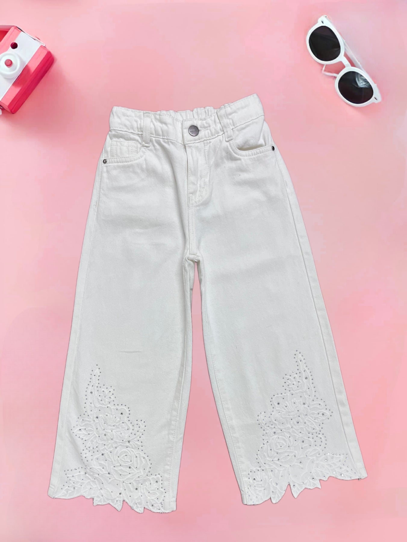 Girls Wide Leg Party Wear White Jeans [GJ-1008] ( 5Y -12Years)