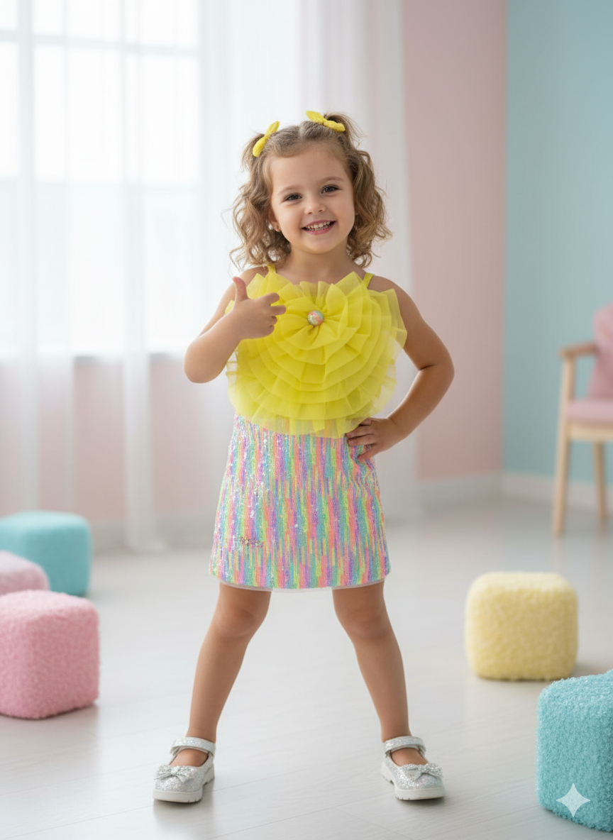 Girls Partywear Sequence Yellow One-Piece [GD-6439] (1-7Years)