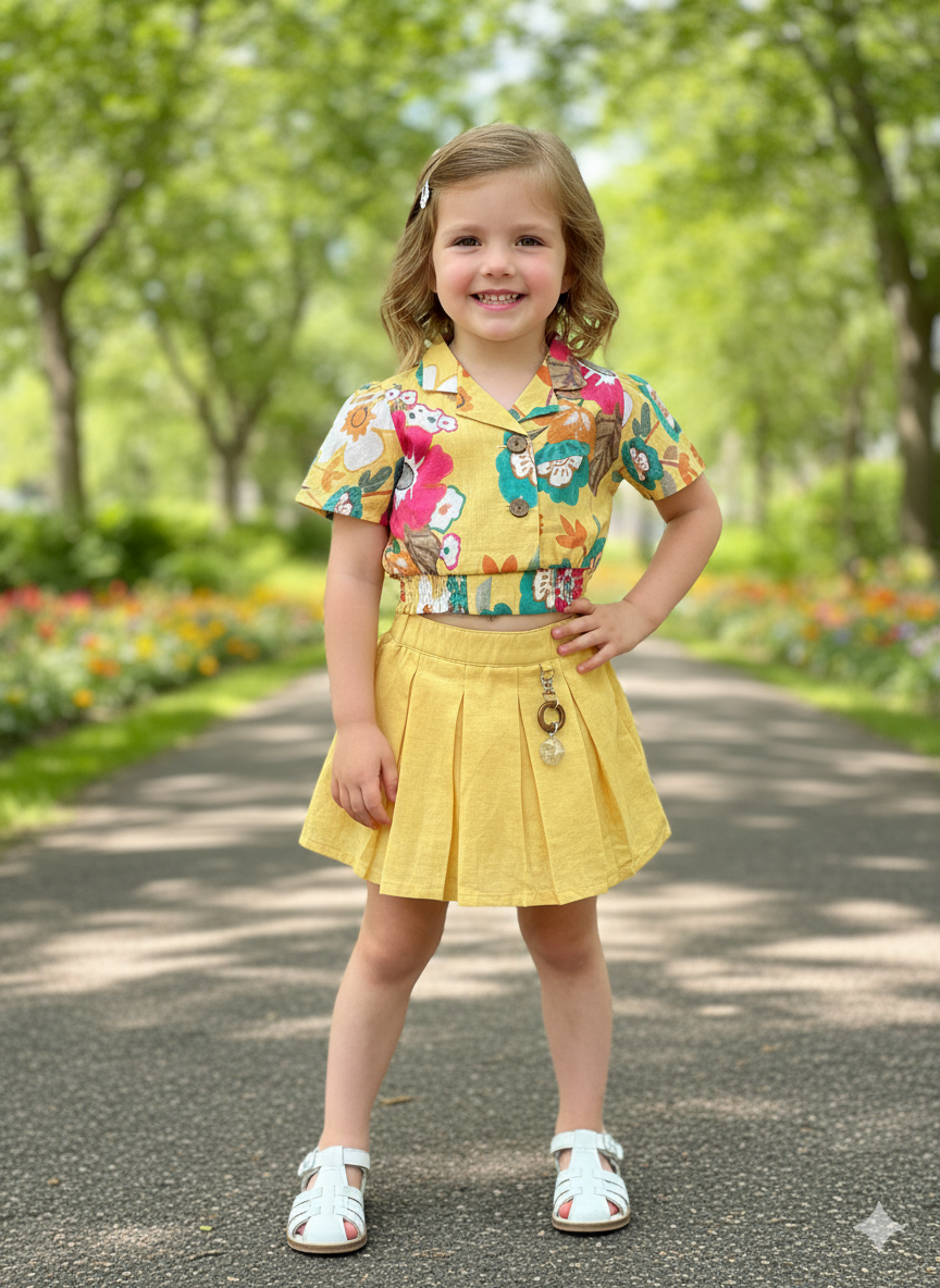 Girl's Printed Yellow Co-Ord Set [GCS-6300](1-7 Years)