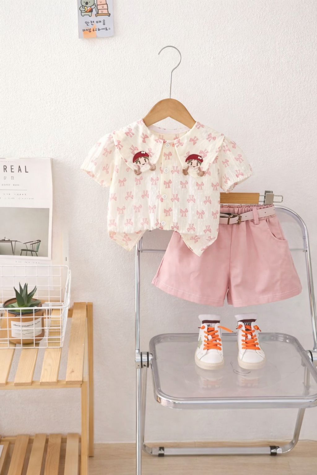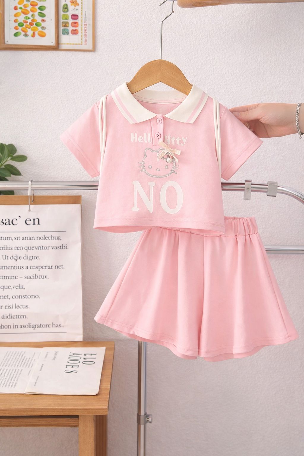 Girls' Pastel Pink Polo Collar 2-Piece Co-ord Set [GCS-4958] (2-7 Years)