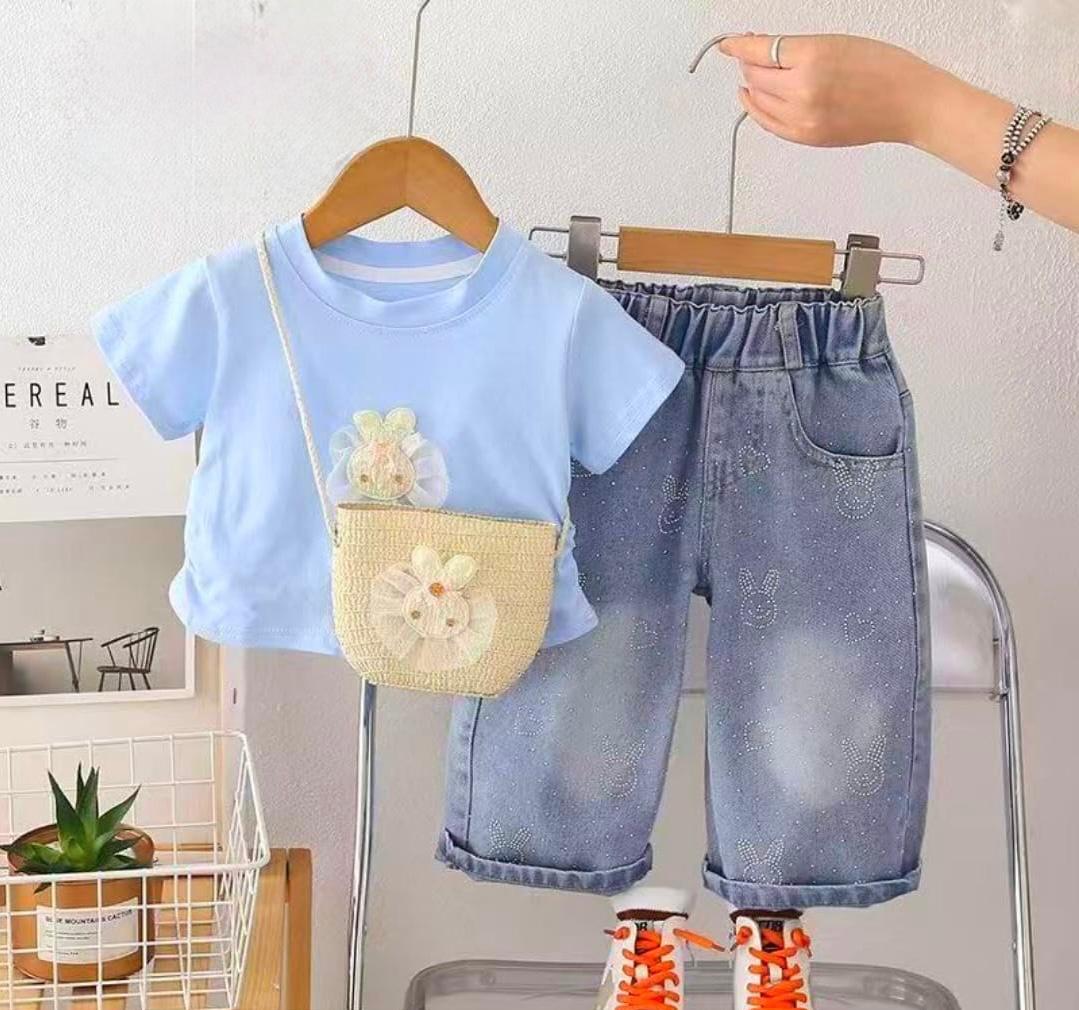 Girls Sky Blue Co-Ord Set With Bag [GCS-4985] (2-6 Years)